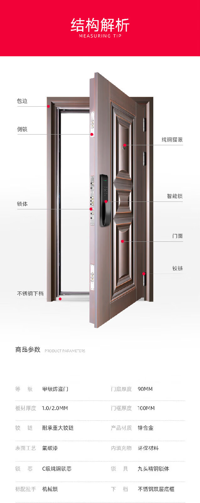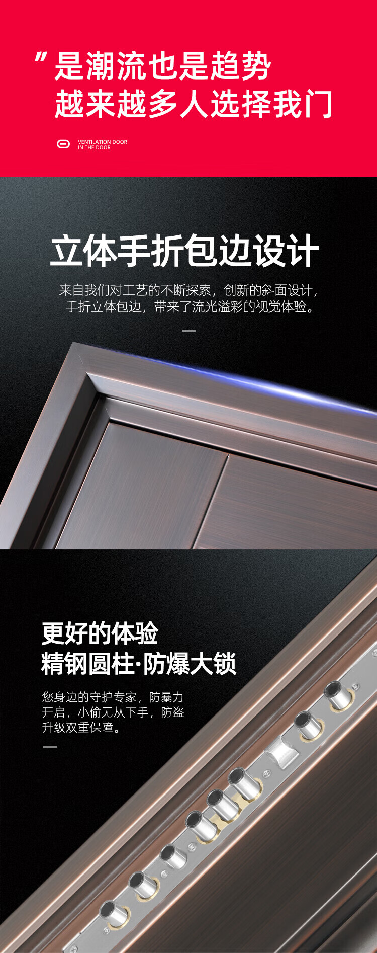 防盗门甲级钢质入户门进户室外带气窗通风子母门双开农村门 1970*860/960-内/外开[下单备