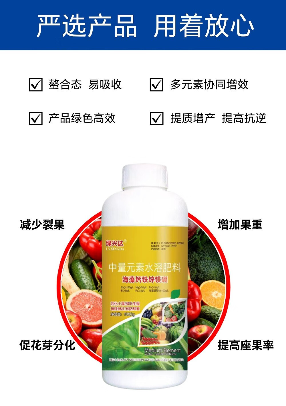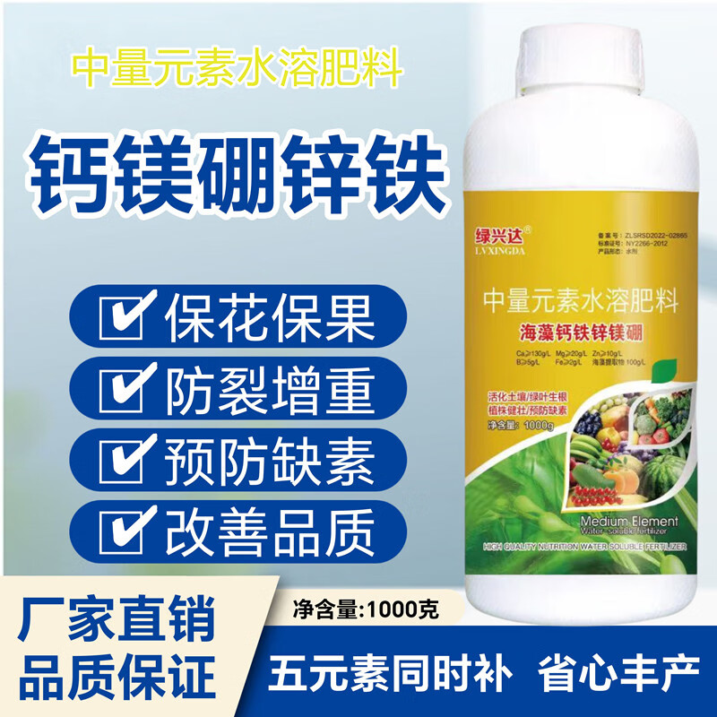 Green Xingda calcium magnesium boron zinc iron trace elements calcium iron zinc magnesium boron fertilizer to root and strengthen seedlings to preserve flowers and fruits organic foliar fertilizer seaweed calcium iron zinc magnesium boron 500g*1 bottle