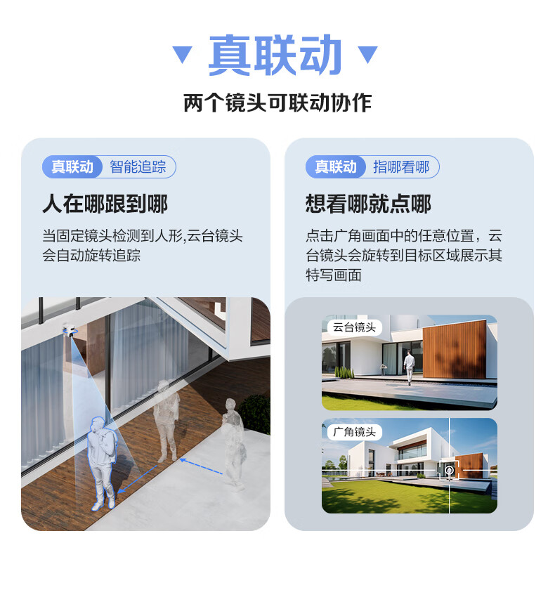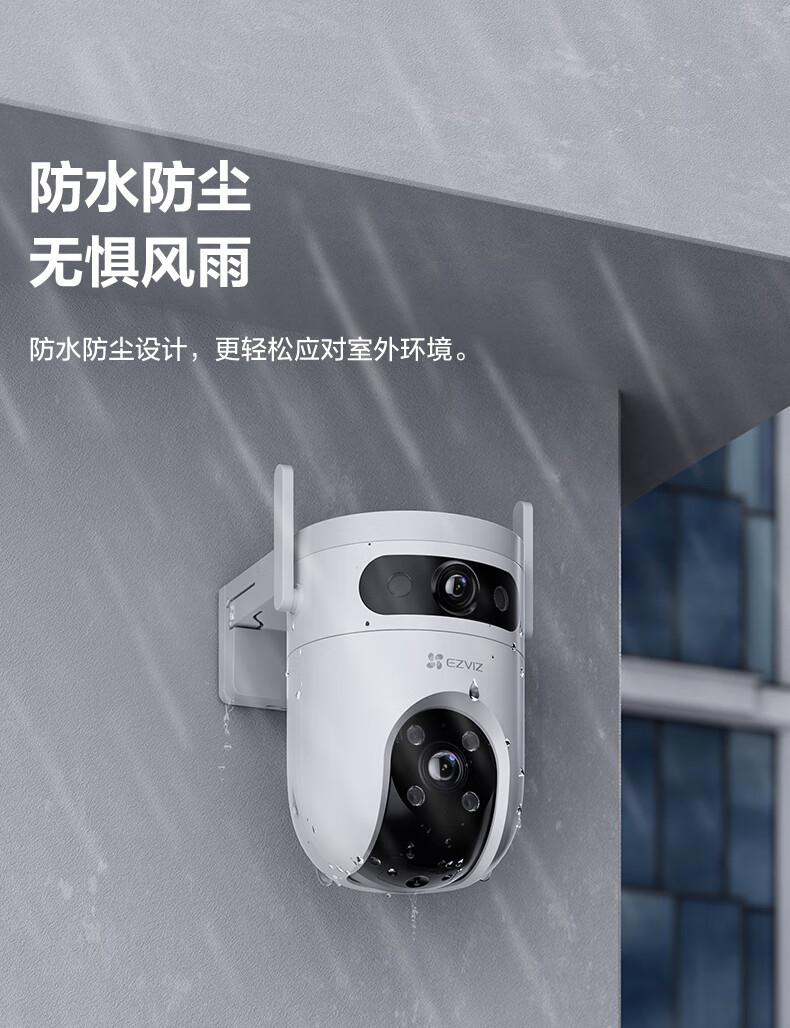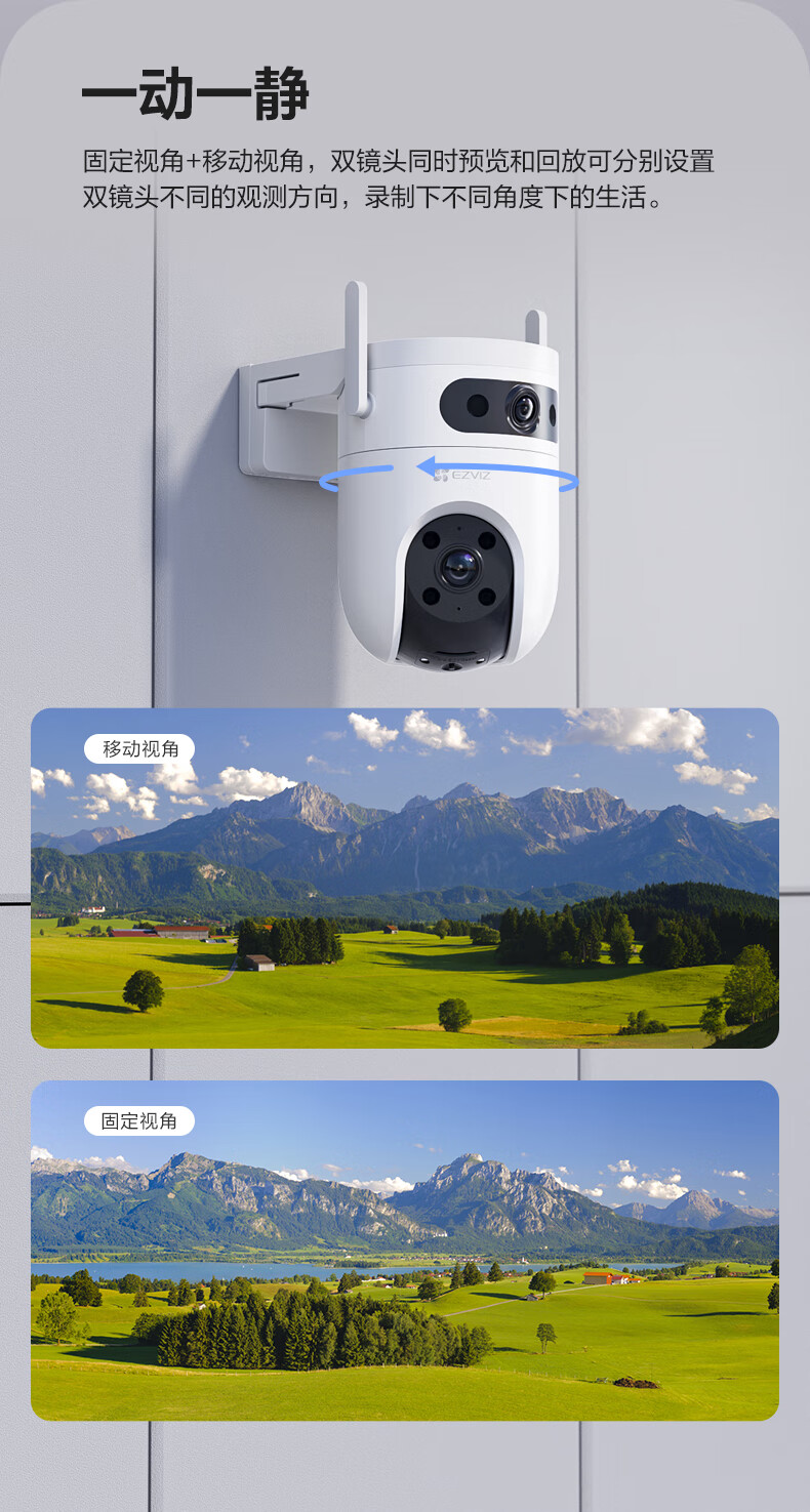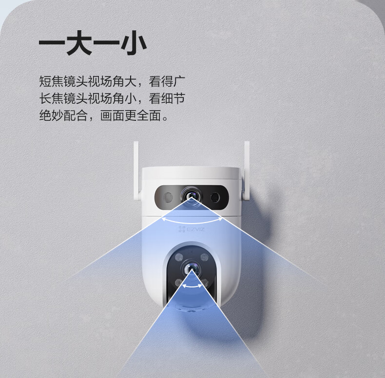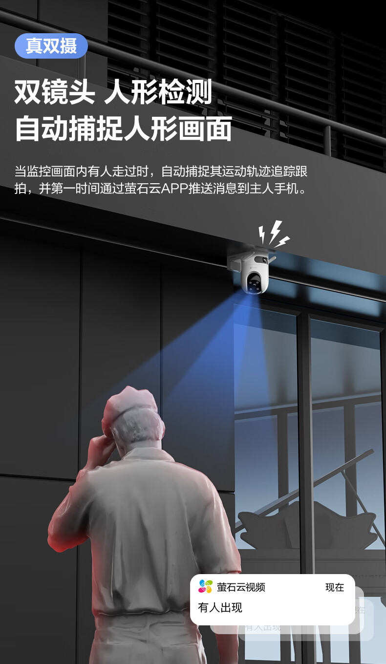 Hikvision-Kamera, Doppelkamera für den Außenbereich, H9C, Wolken-Billardmaschine, Fluorit, kabelloses WLAN, Heim-Handy-Fernüberwachung, 5 Millionen + 5 Millionen Doppelkamera + Personen- und Fahrzeugerkennung, offizieller Standard + 64 G (Upgrade auf 128 G)