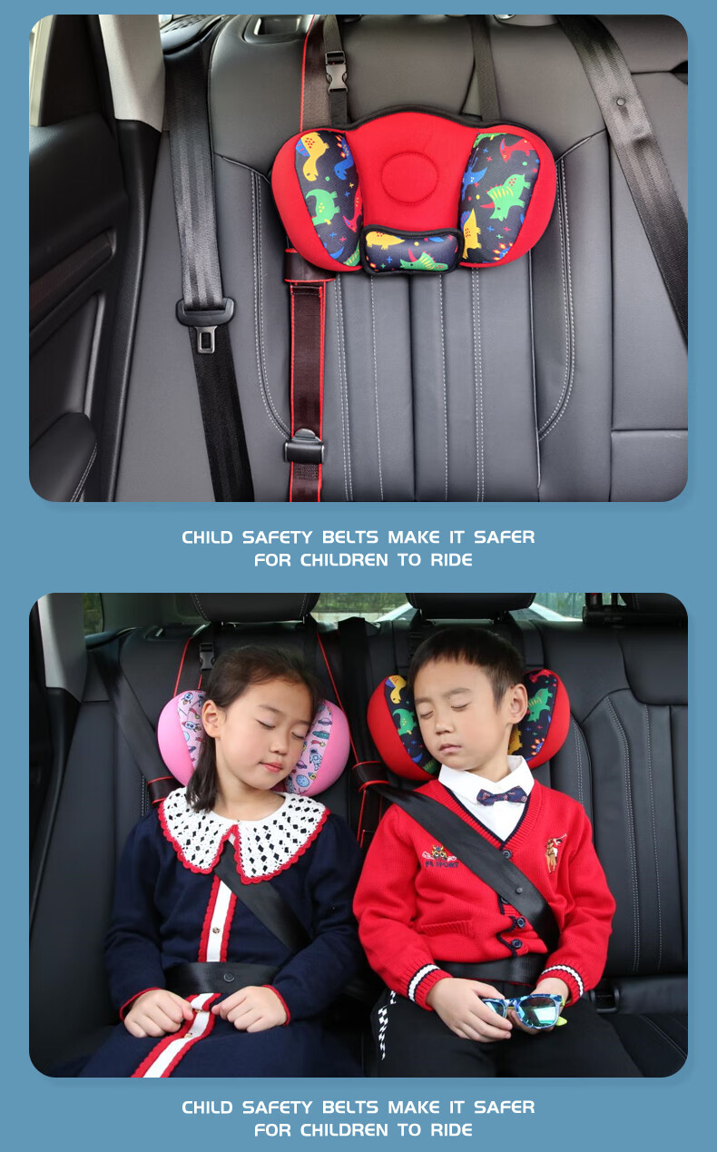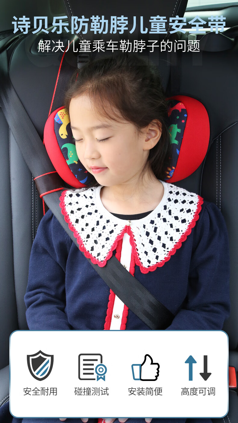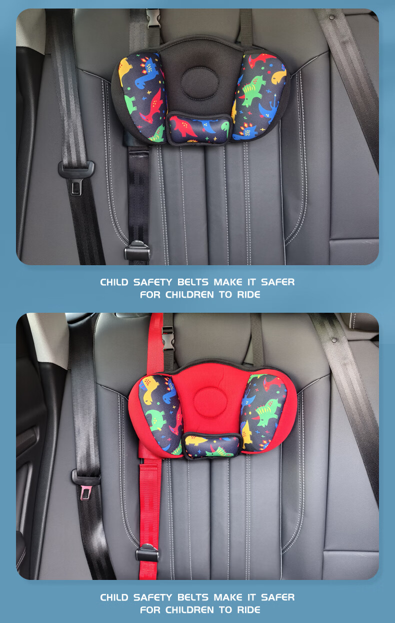 Sibeile Auto-Kindersicherheitsgurt-Einstellung, Fixateur, Anti-Strangulationsbegrenzer, Hilfsgurt-Schulterabdeckung, einfacher Sicherheitssitz, schwarzer Anti-Strangulations-Sicherheitsgurt + schwarzes Dinosaurier-Nackenkissen
