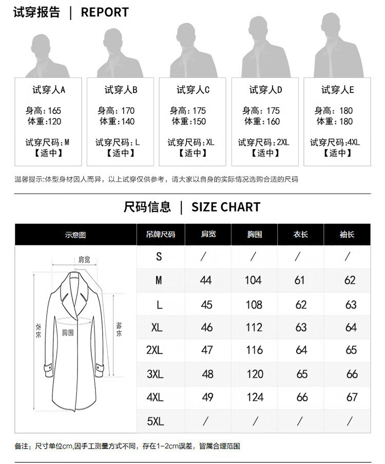 China (cm) 165 / 88-90 170 / 96-98 175 / 108-110 180 / 118-122 185 / 126-130