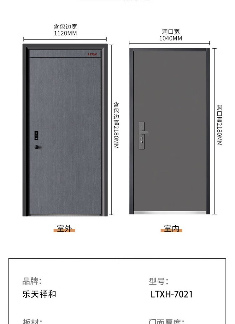 乐天祥和防盗门别墅大门甲级家用安全门指纹锁子母门单门入户进户门 LTXH-7021