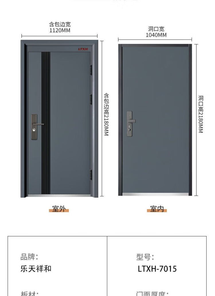 乐天祥和防盗门别墅大门甲级家用安全门指纹锁子母门单门入户进户门 LTXH-7026