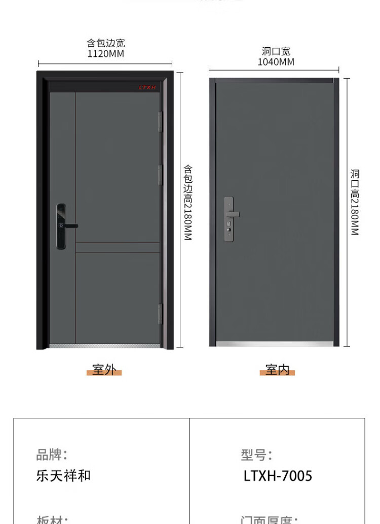 乐天祥和防盗门别墅大门甲级家用安全门指纹锁子母门单门入户进户门 LTXH-7005
