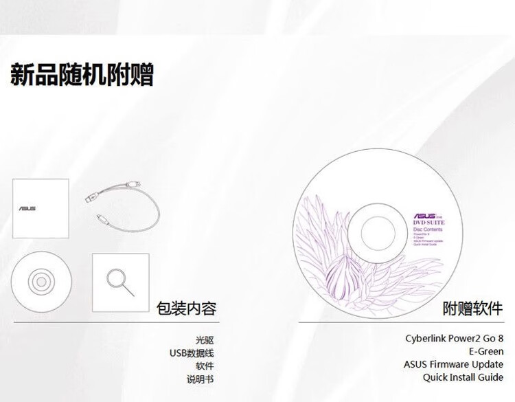 华硕外置光驱CD DVD刻录机D9 8.5G档案级光盘刻录机USB typec 华硕sdrw-08d6s-u(USB2.0接口)
