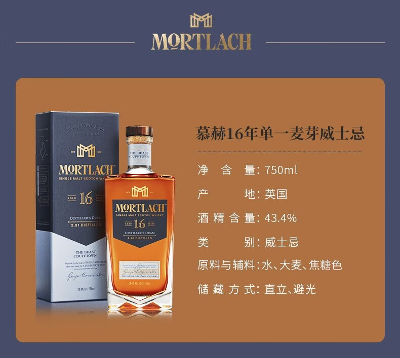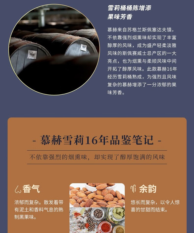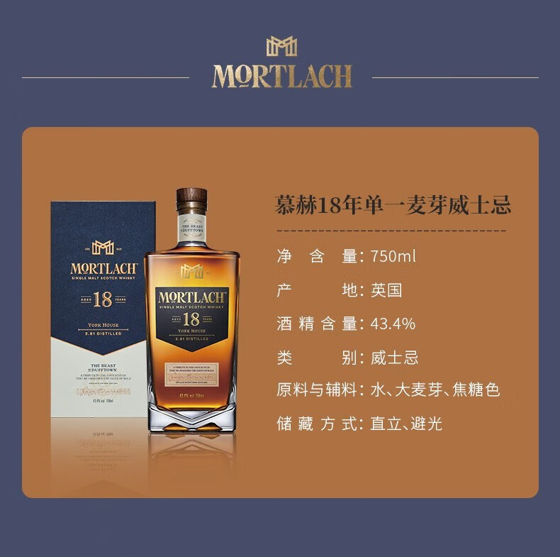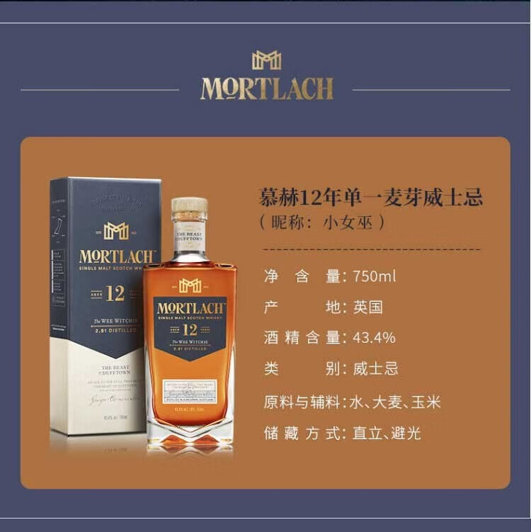 慕赫单一麦芽威士忌700ml 苏格兰斯佩塞产区 进口洋酒 慕赫12年单一麦芽威士忌