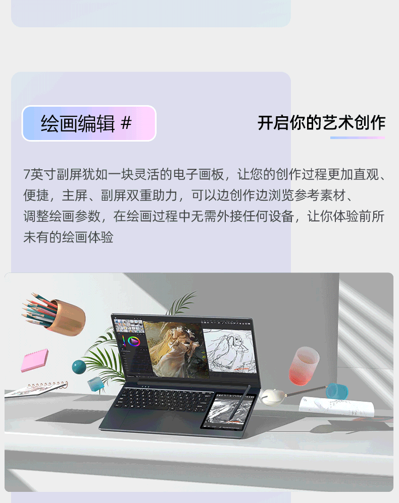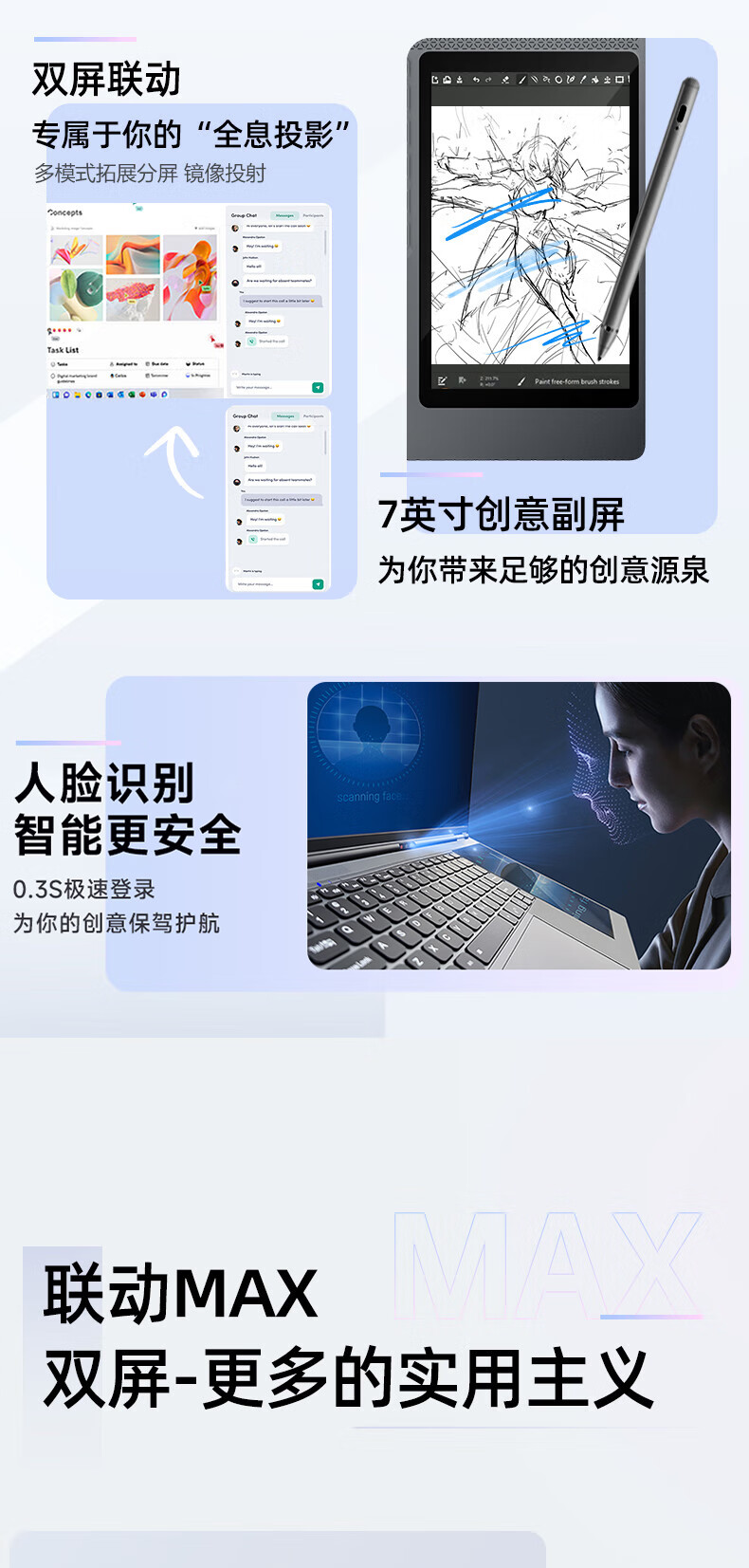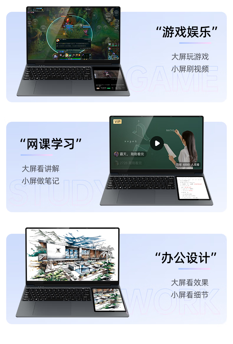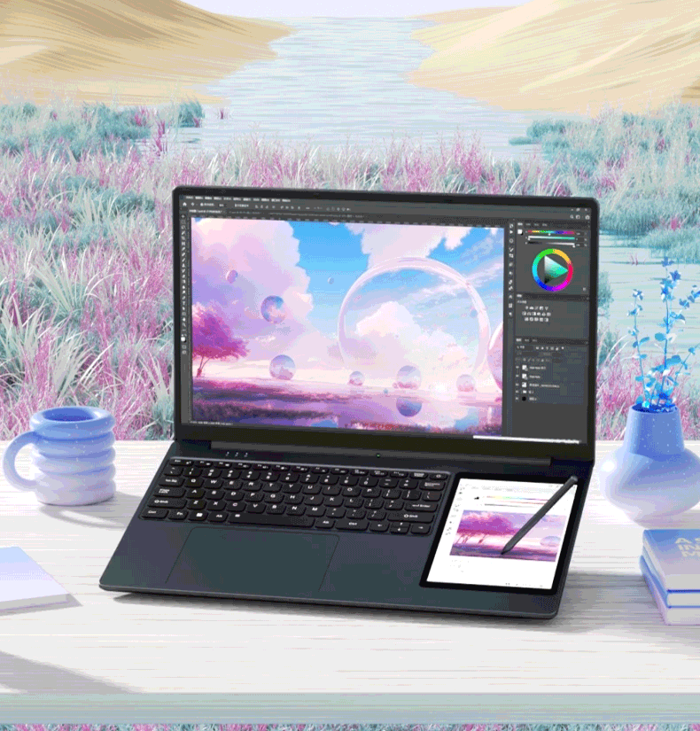 Suxi Core i7pro + 16e génération Intel 2025 ordinateur portable double écran lié deux-en-un tactile livre fin et léger AI Office Stock Trading Student Design ordinateur portable de jeu 16e génération Intel double écran 15,6 + 7 pouces + reconnaissance faciale 32G stockage haute vitesse + 2T ultra-rapide grand SSD + configuration supérieure ultime
