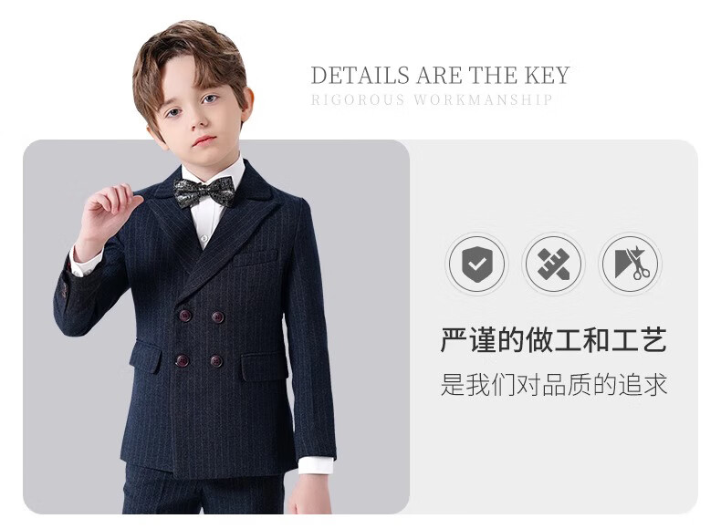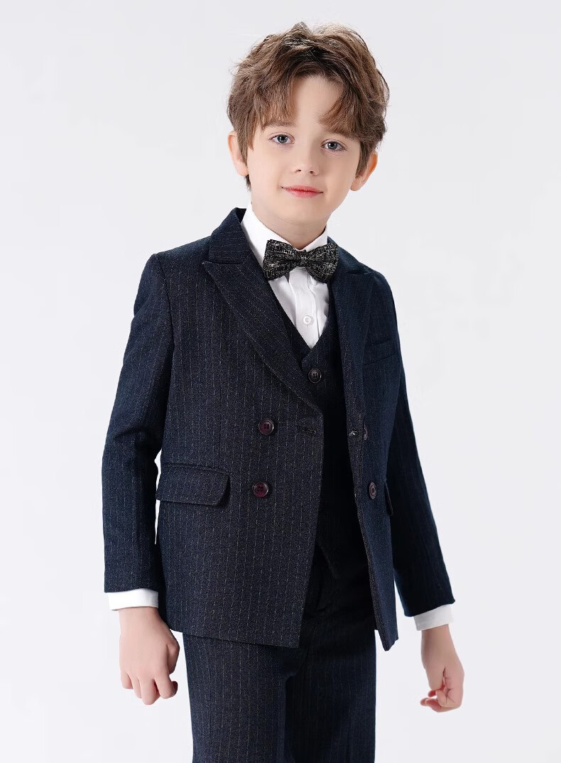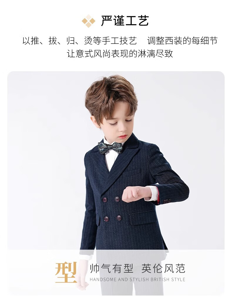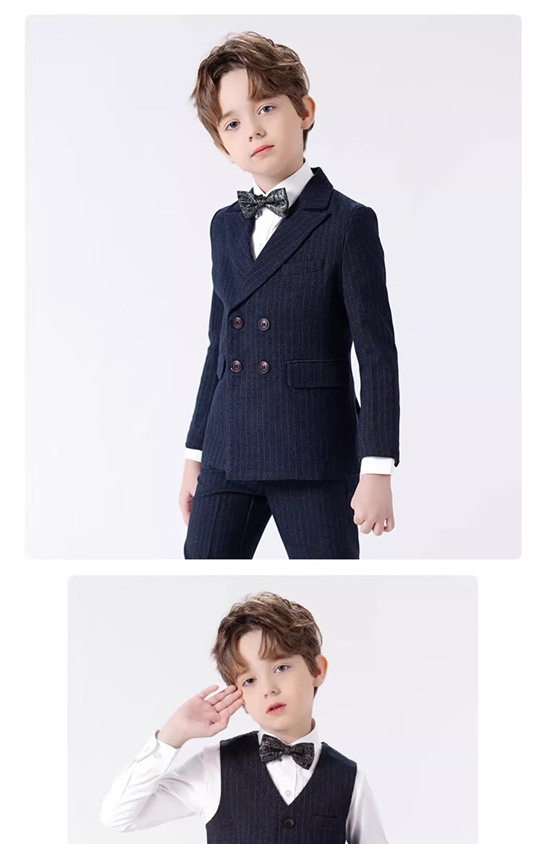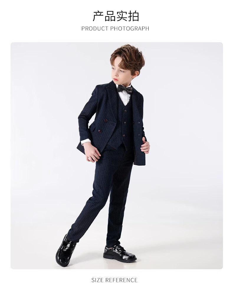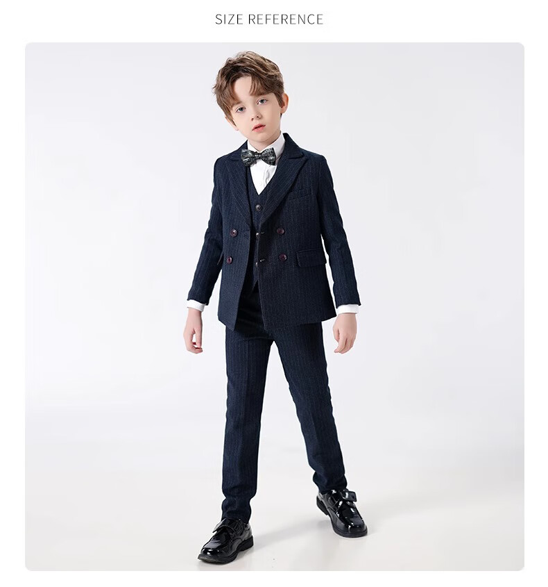 罗蒙男童西装套装花童表演礼服帅气男孩外套小西服钢琴毕业儿童演 深灰色西装4件套(马甲) 130