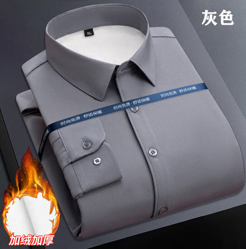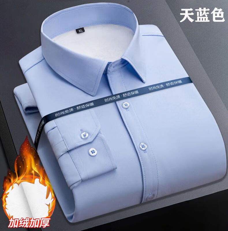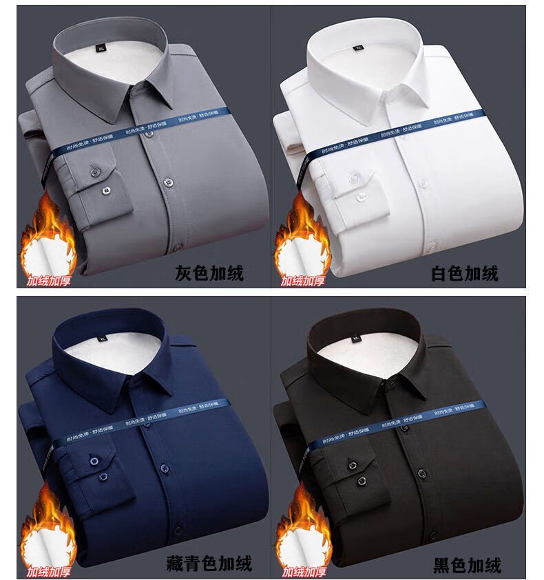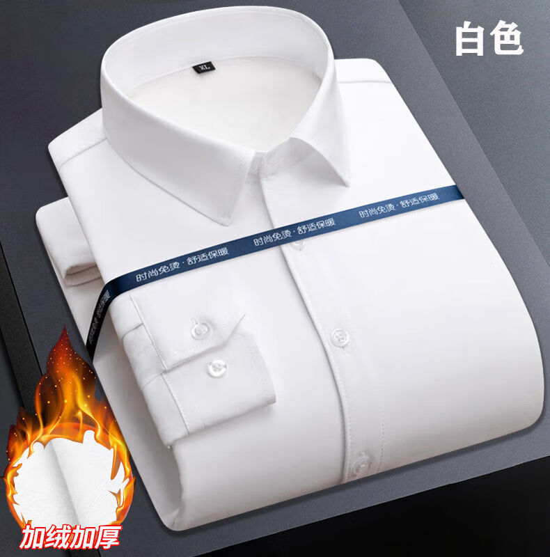 皮尔卡丹纯棉免烫抗皱长袖衬衫男士加绒加厚弹力内搭西装衬衣职业正装上衣 加绒加厚白色 41 (135-150斤)