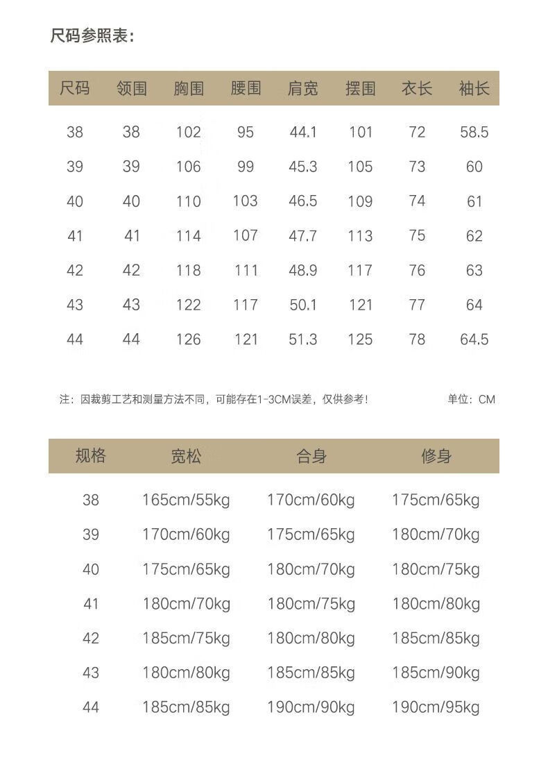 Size (cm) 42 44 46 48 50