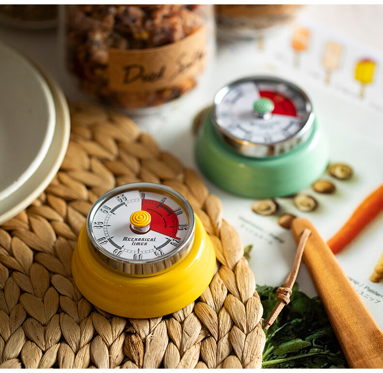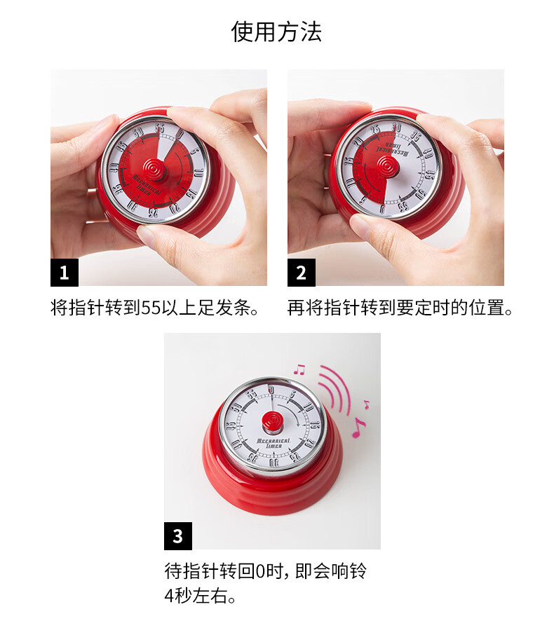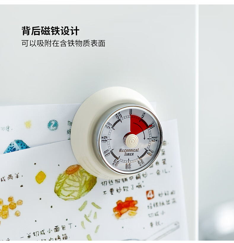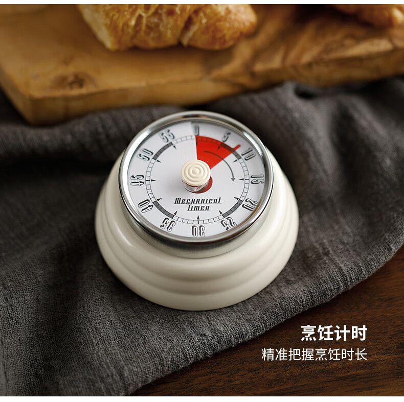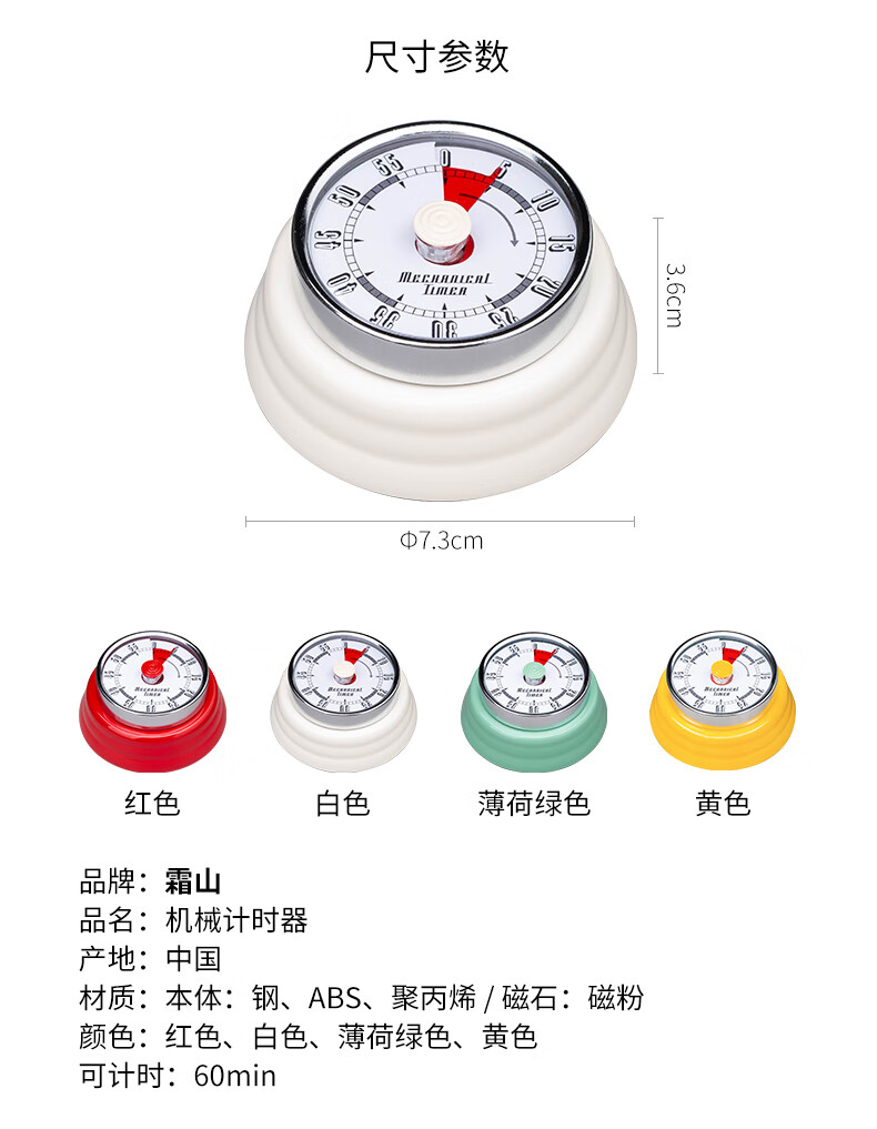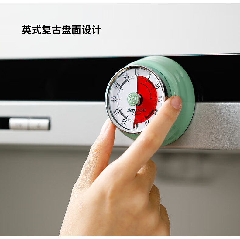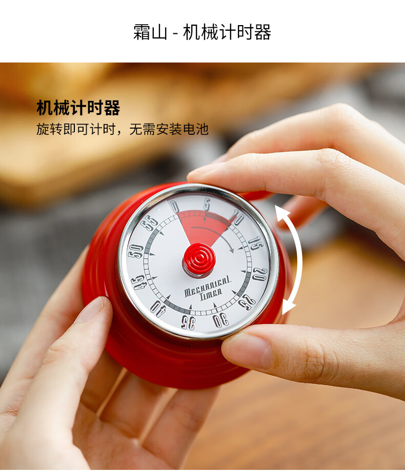 霜山厨房定时器机械计时器做饭定时提醒器时间管理闹钟倒计时磁吸 古典红【无需电池/磁铁吸附】