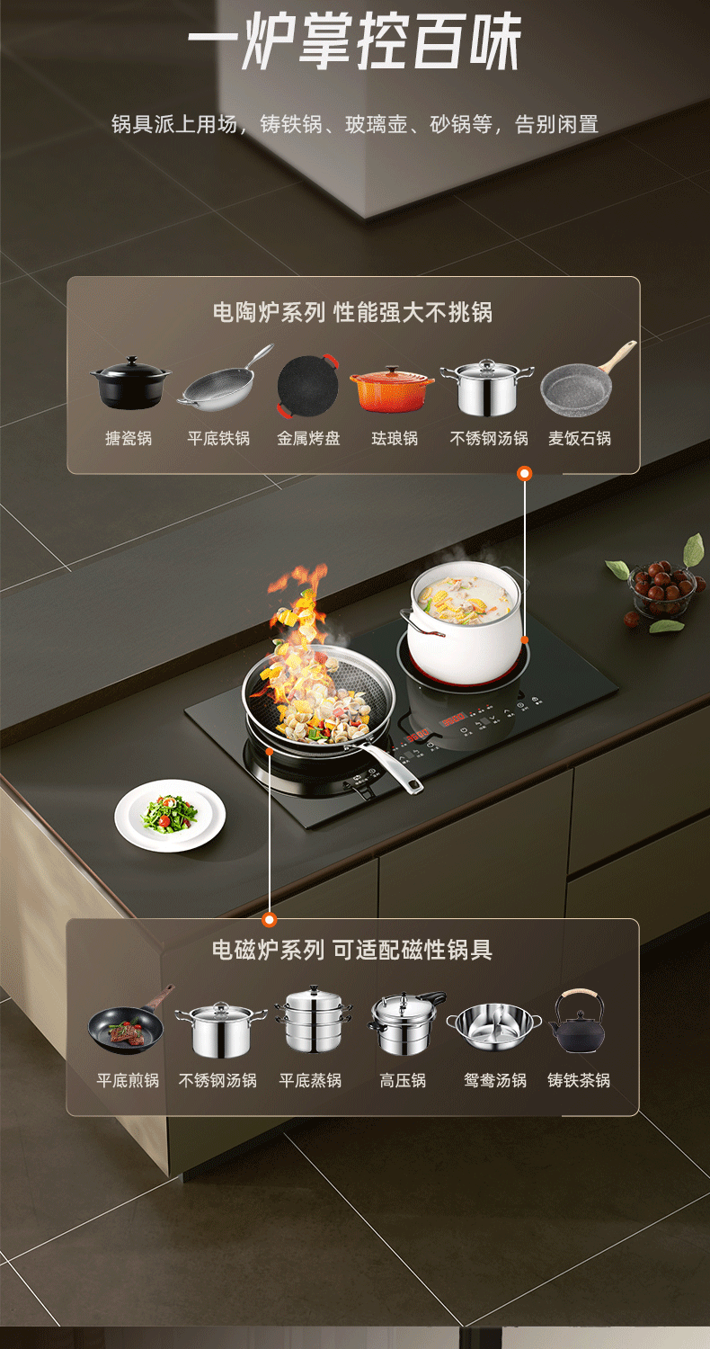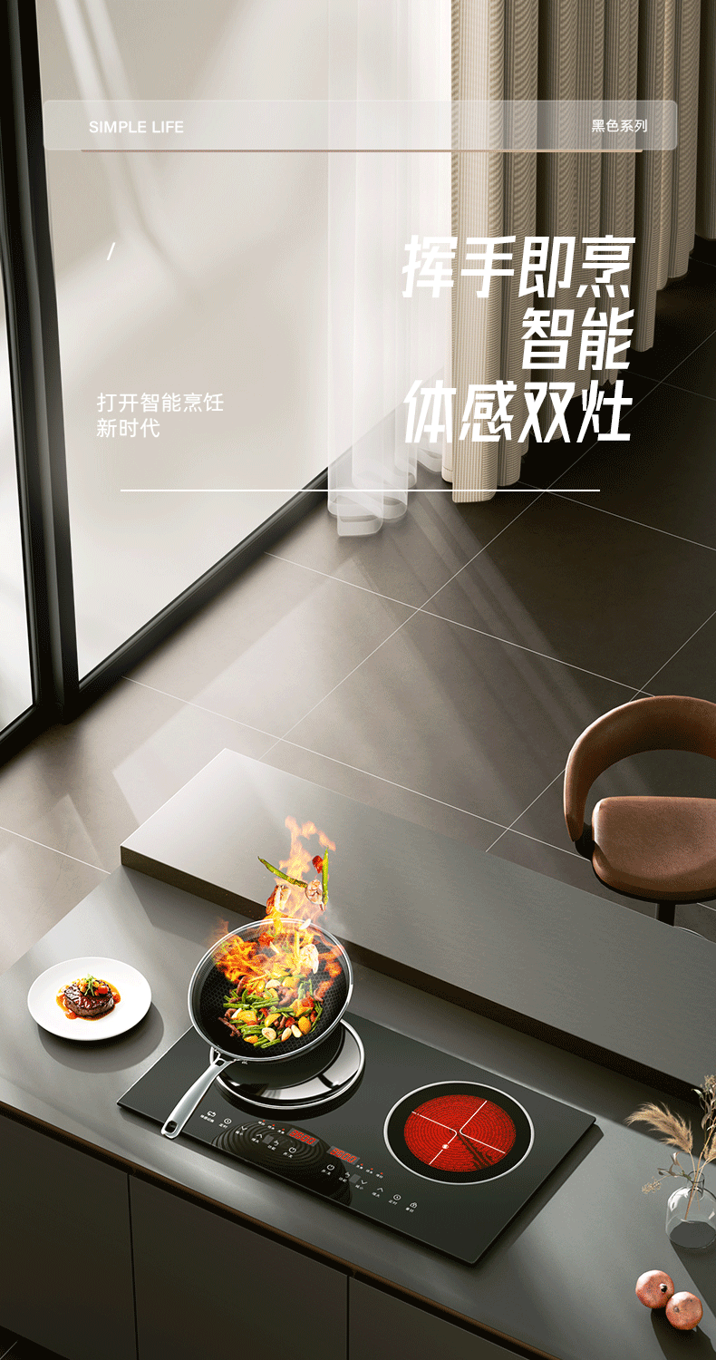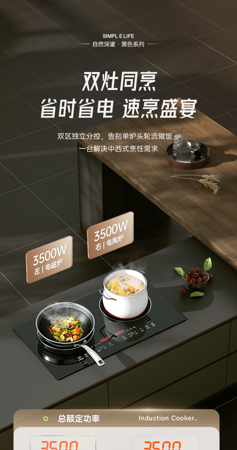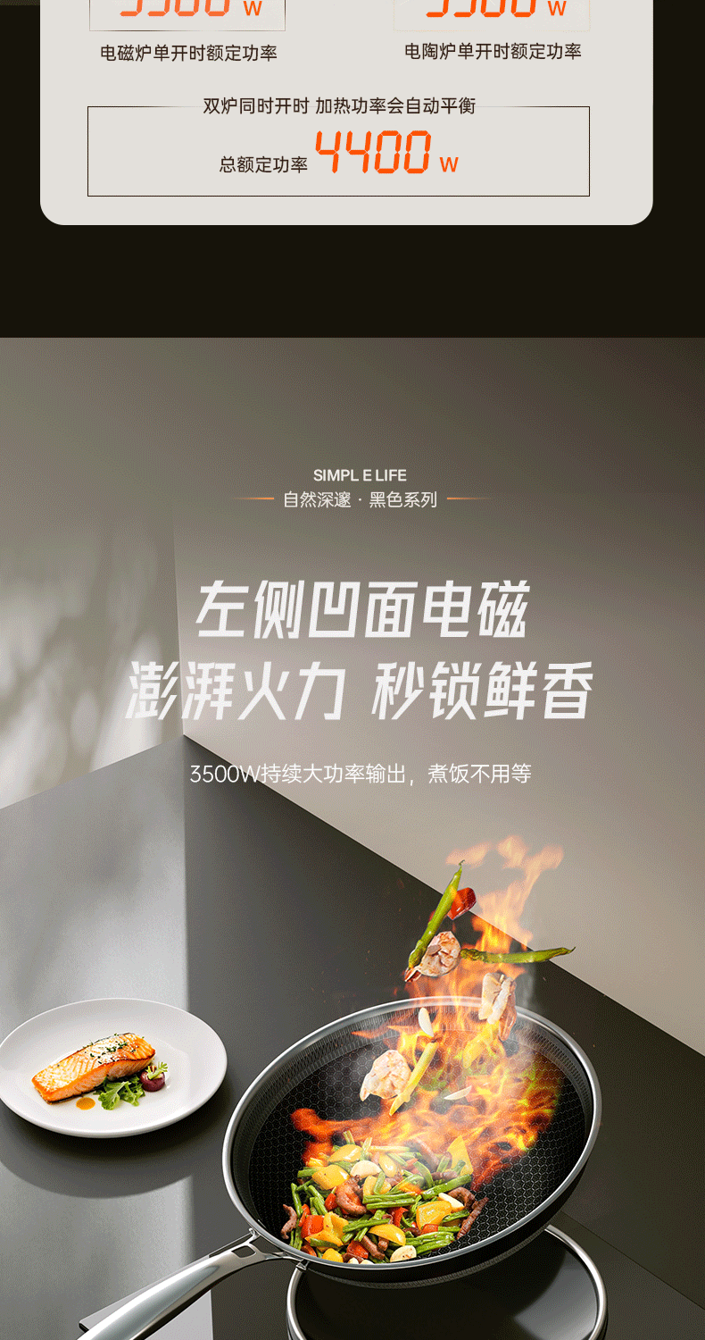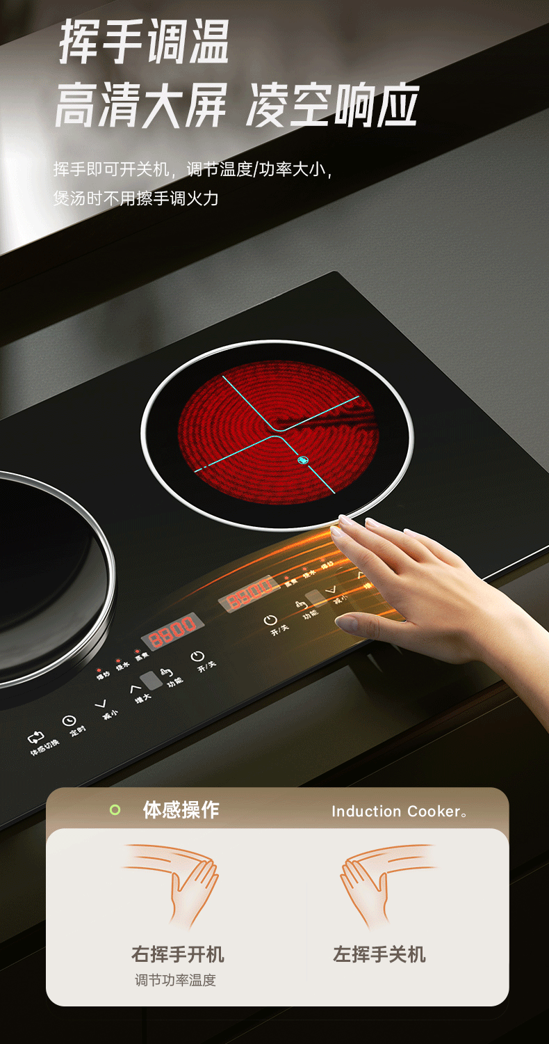 Enthusiastic Good Wife 4400W Fierce Fire High Power Watt Intelligent Body Sensing Human-Computer Interaction Household Flat Concave Double-Head Induction Cooker Electric Ceramic Integrated Stove Inlaid with Embedded Stir-frying Space Control Energy Saving Left Flat Electromagnetic 3500W Right Concave Electromagnetic 3500W Upgraded Body Sensing Model