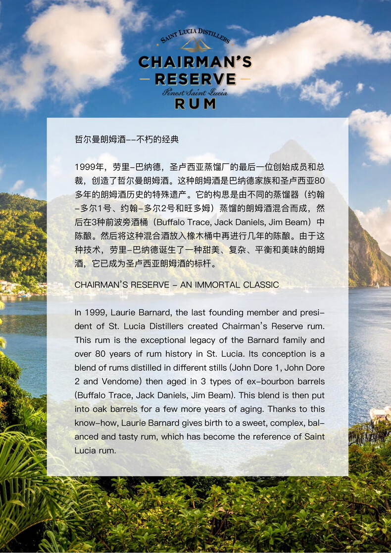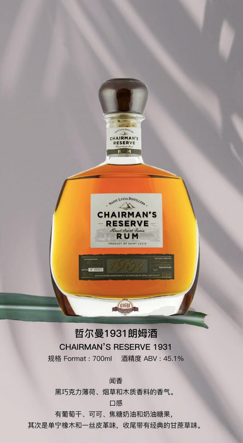 哲尔曼Chairman's Reserve【原瓶进口】圣卢西亚加勒比地区朗姆酒洋酒调酒基酒 哲尔曼1931朗姆酒 700mL