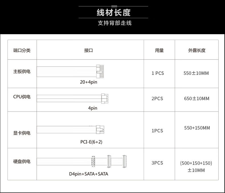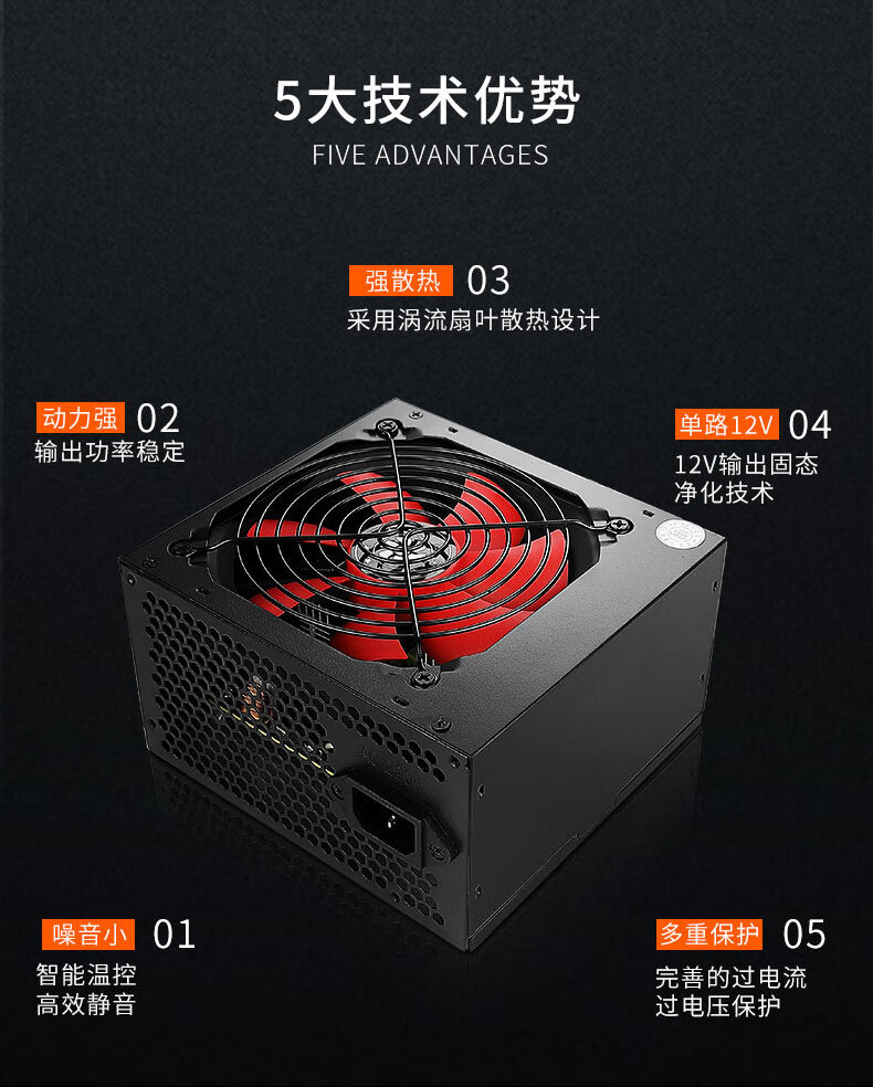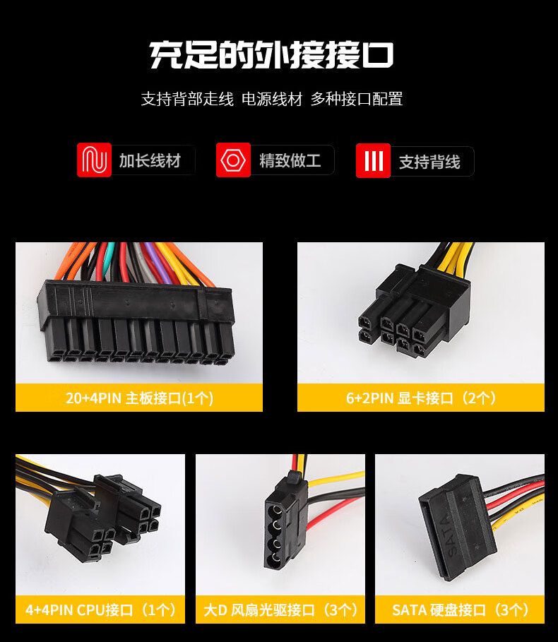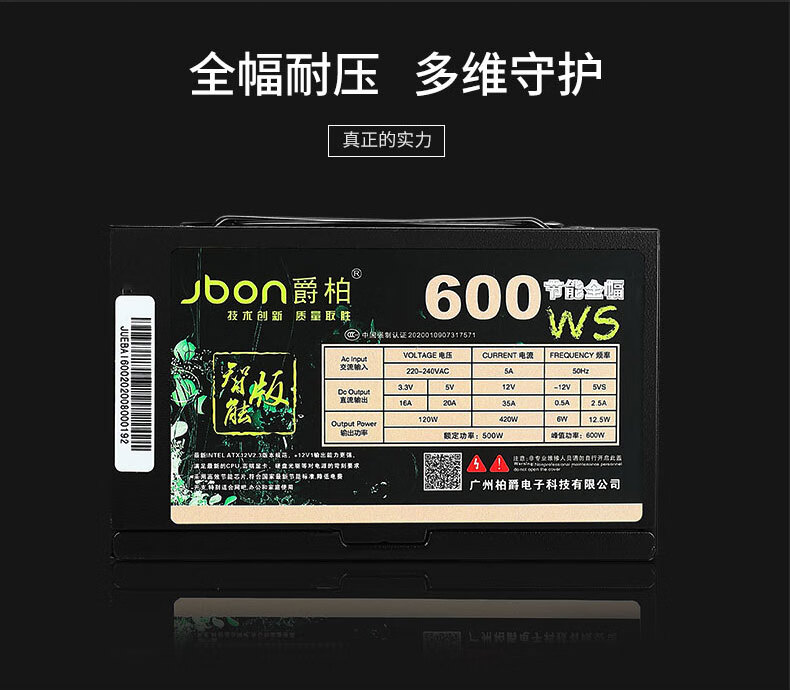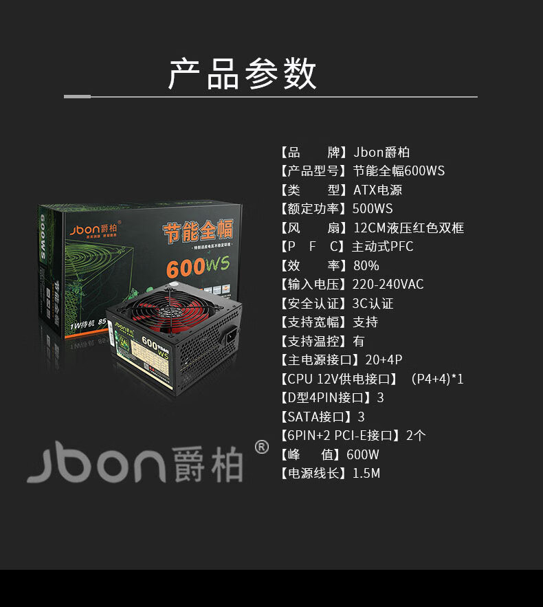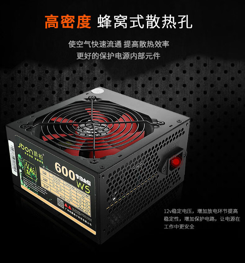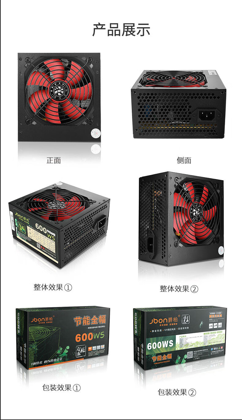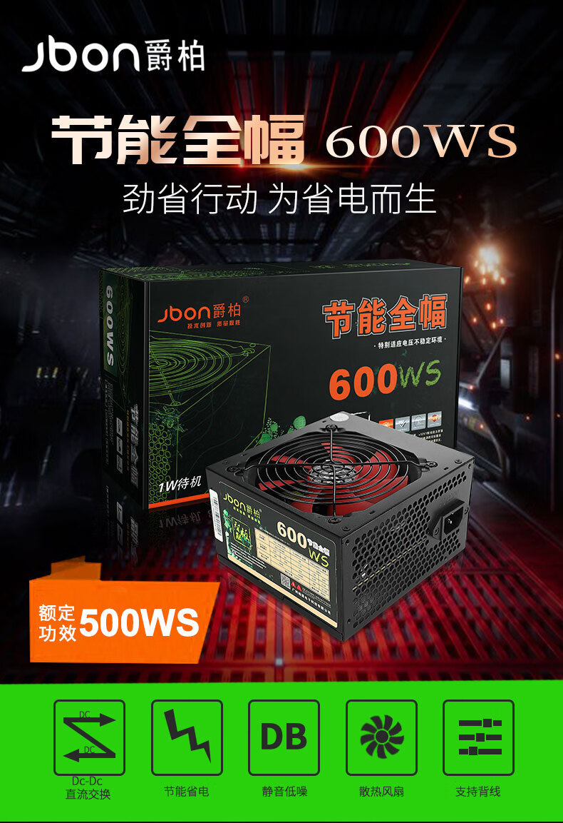爵柏全新电源额定300W/400W/500W/电脑电源PC主机箱台式机电源支持背线宽幅静音 爵柏500WS(额定400W)6+2P显卡供电