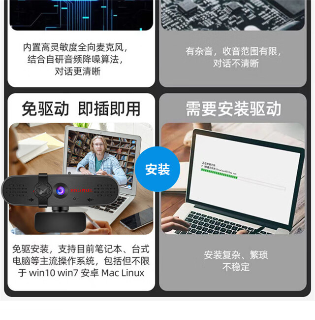 Juxutong 4K ultra-clear computer video conferencing camera with microphone audio speaker integrated desktop notebook USB driver-free postgraduate entrance examination re-examination online class conference home office three-in-one camera + 20CM desktop stand office video online class conference recommendation (camera + microphone + audio) three-in-one