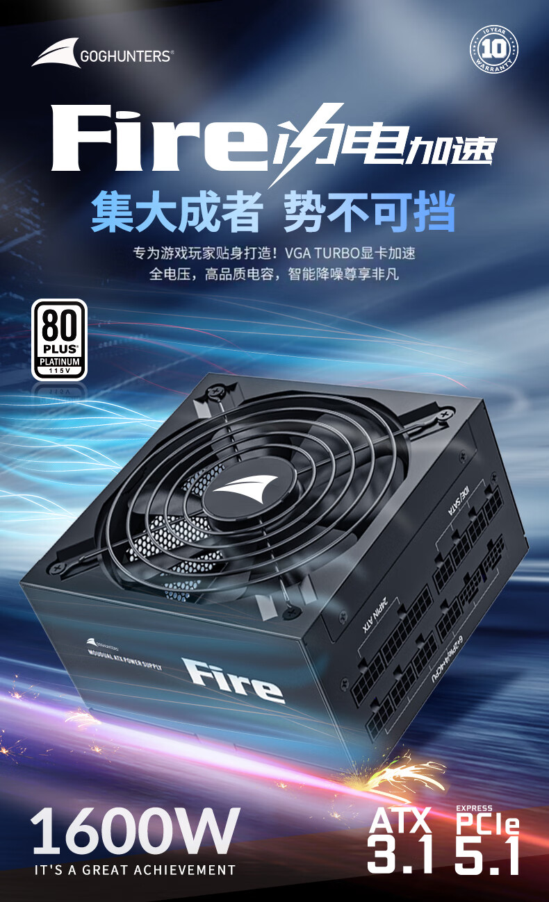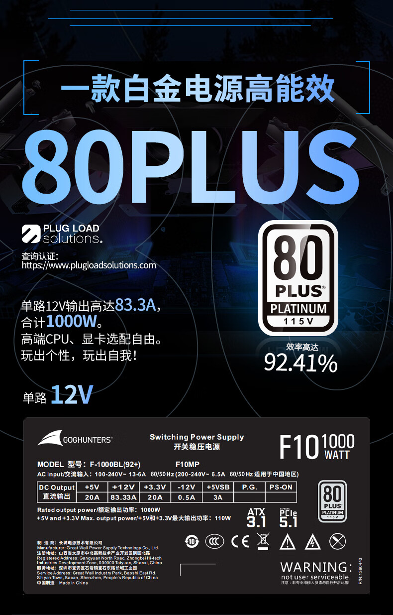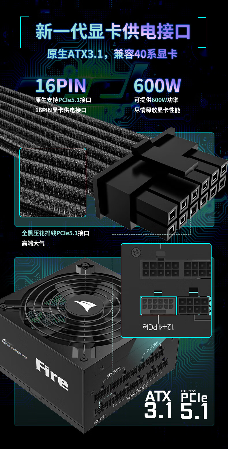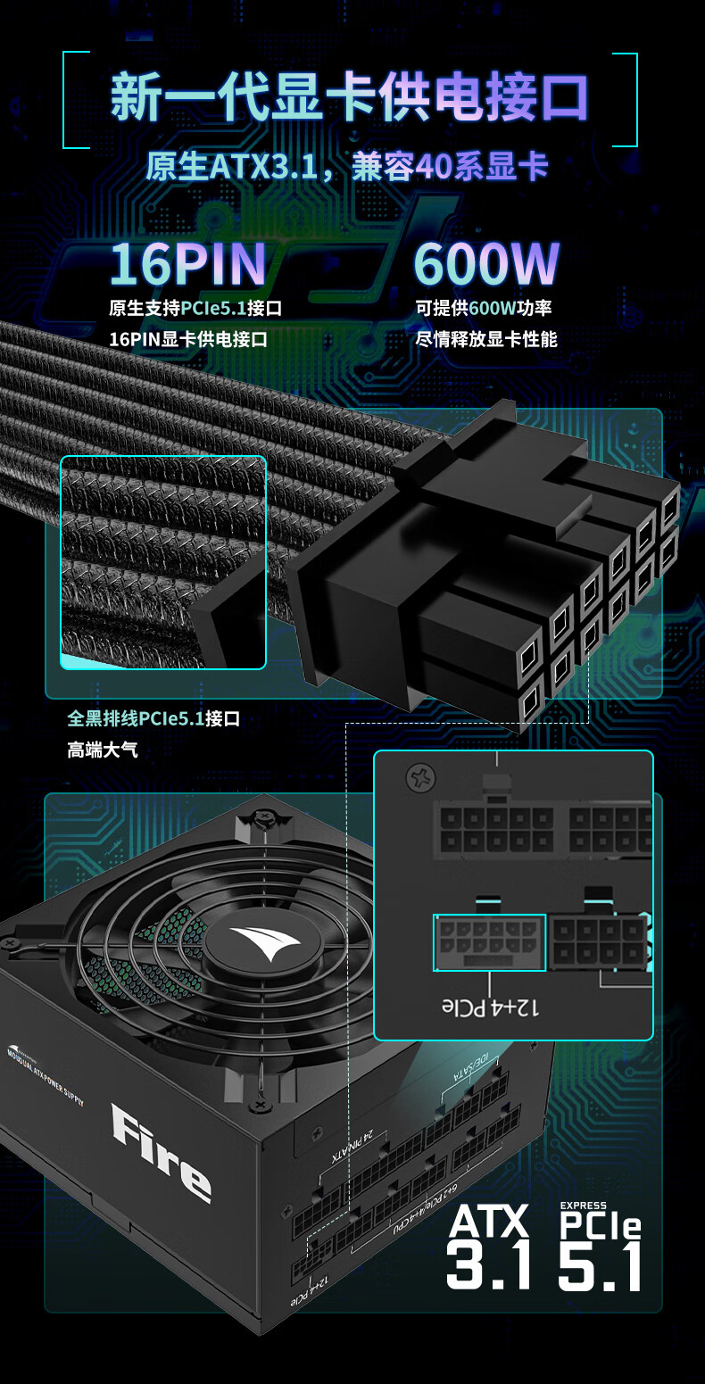 长城(GreatWall) Fire白金全模组电源 台式机主机电源/自动启停 F12白金全模ATX3.1(额定1200W)