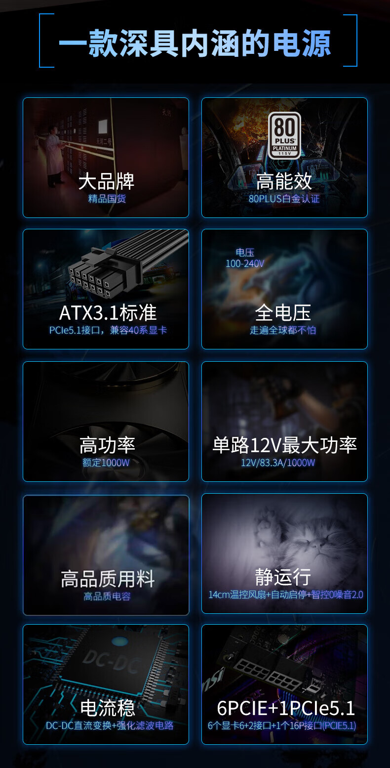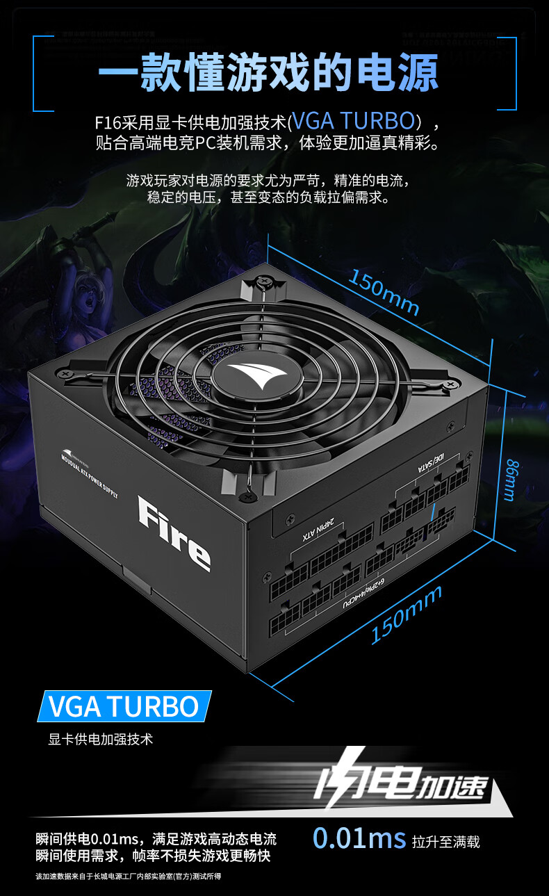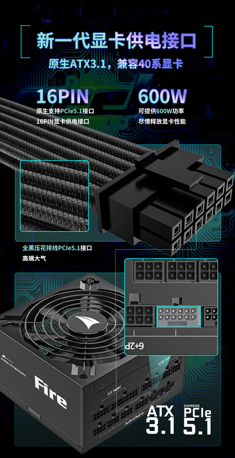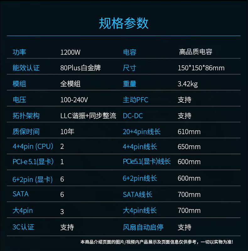 长城(GreatWall) Fire白金全模组电源 台式机主机电源/自动启停 F12白金全模ATX3.1(额定1200W)