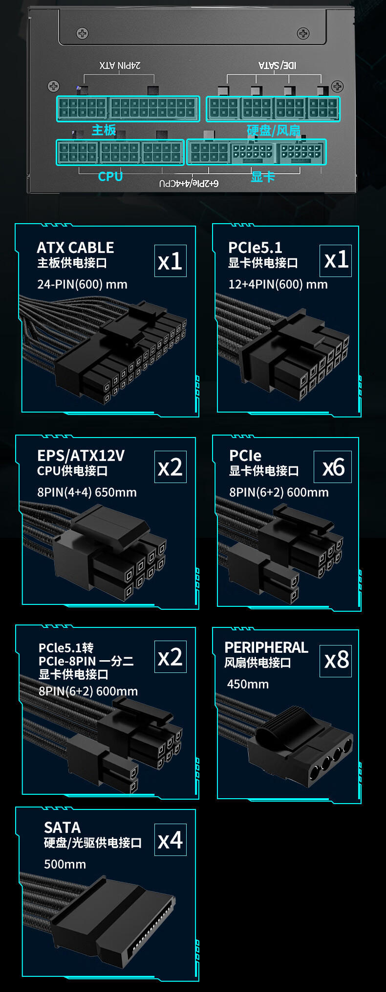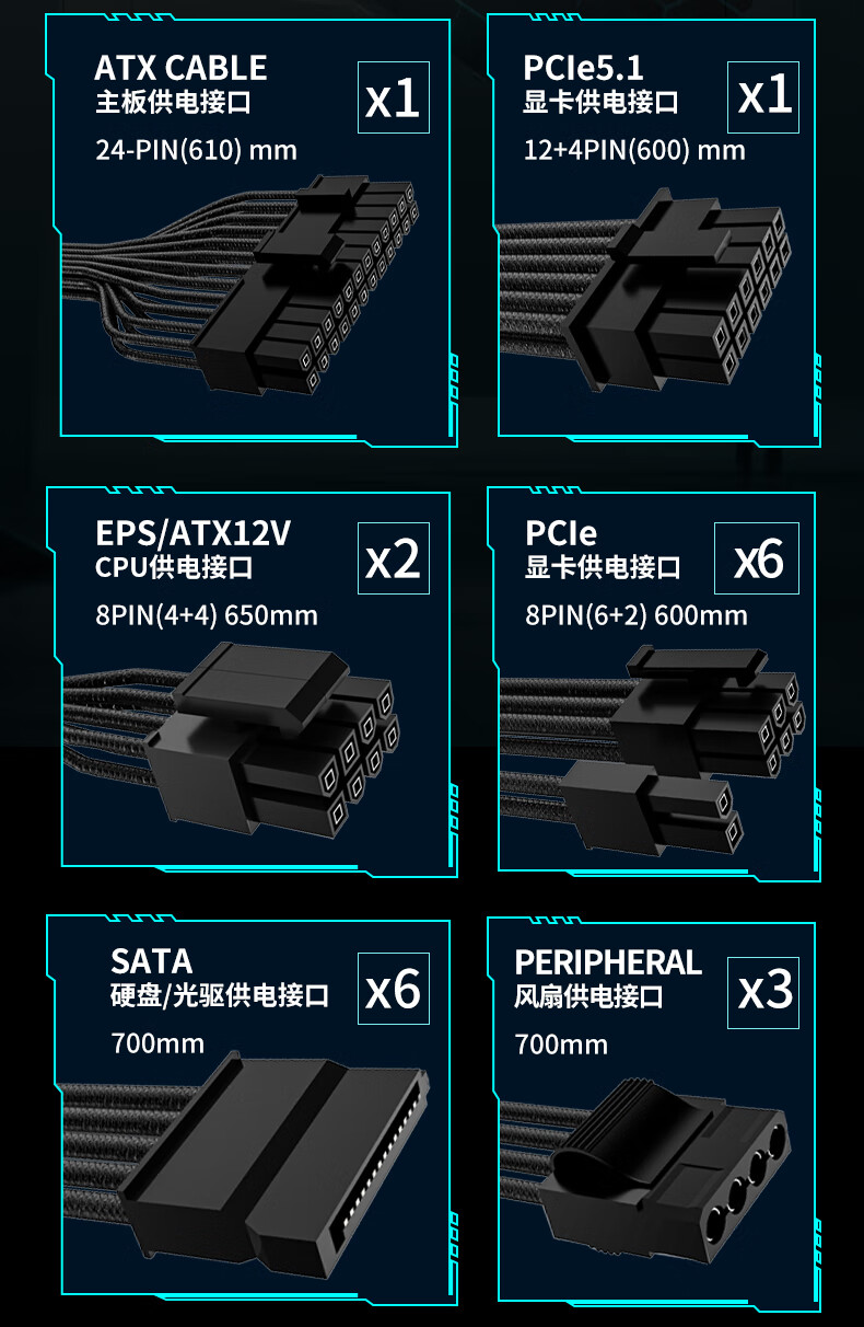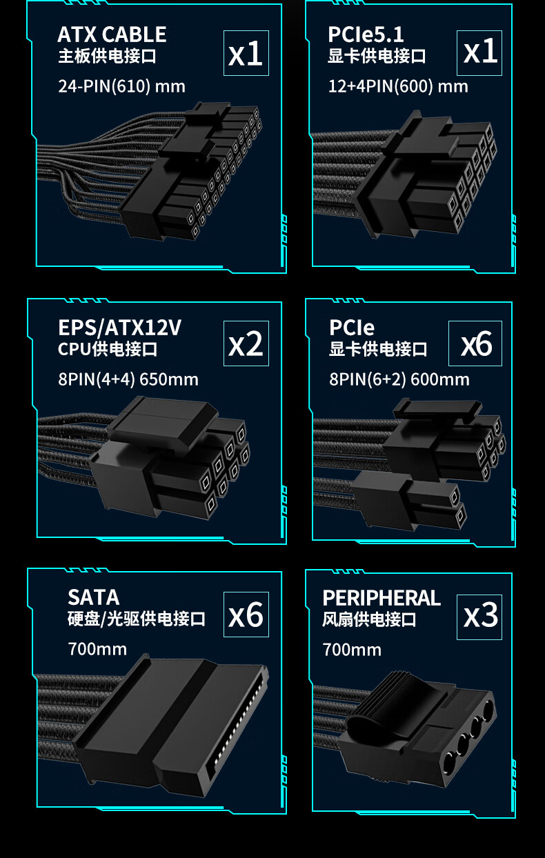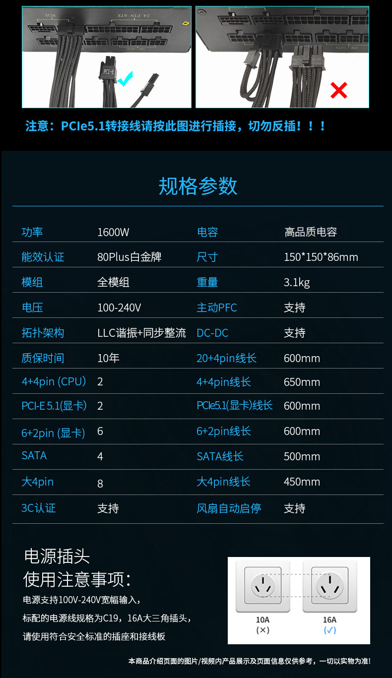 长城(GreatWall) Fire白金全模组电源 台式机主机电源/自动启停 F12白金全模ATX3.1(额定1200W)
