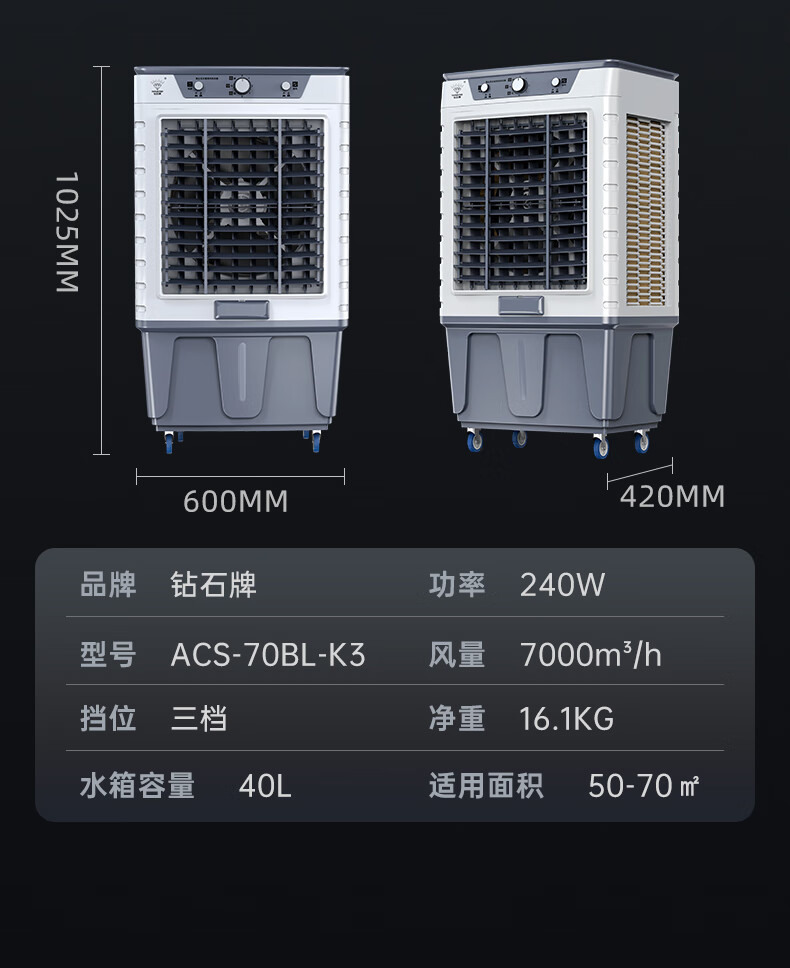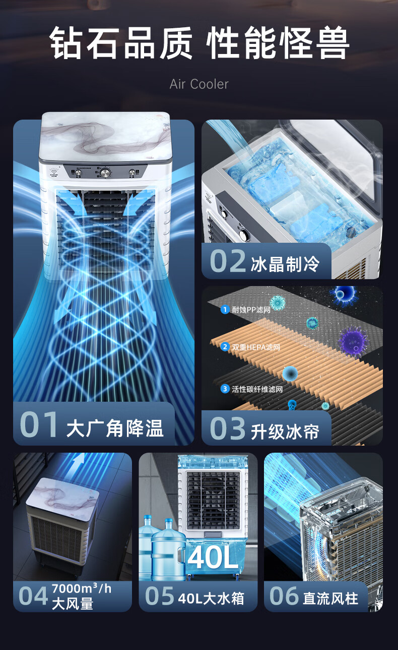 DIAMOND Cool Purification Industrial Air Cooler Air Conditioning Fan Mobile Commercial Air Conditioning Fan Single Cooling Refrigerator Water Cooling Air Conditioning Companion Household Cooling Fan Refrigeration Air Cooler MX 1.03 meters high - Mechanical model One-click humidification