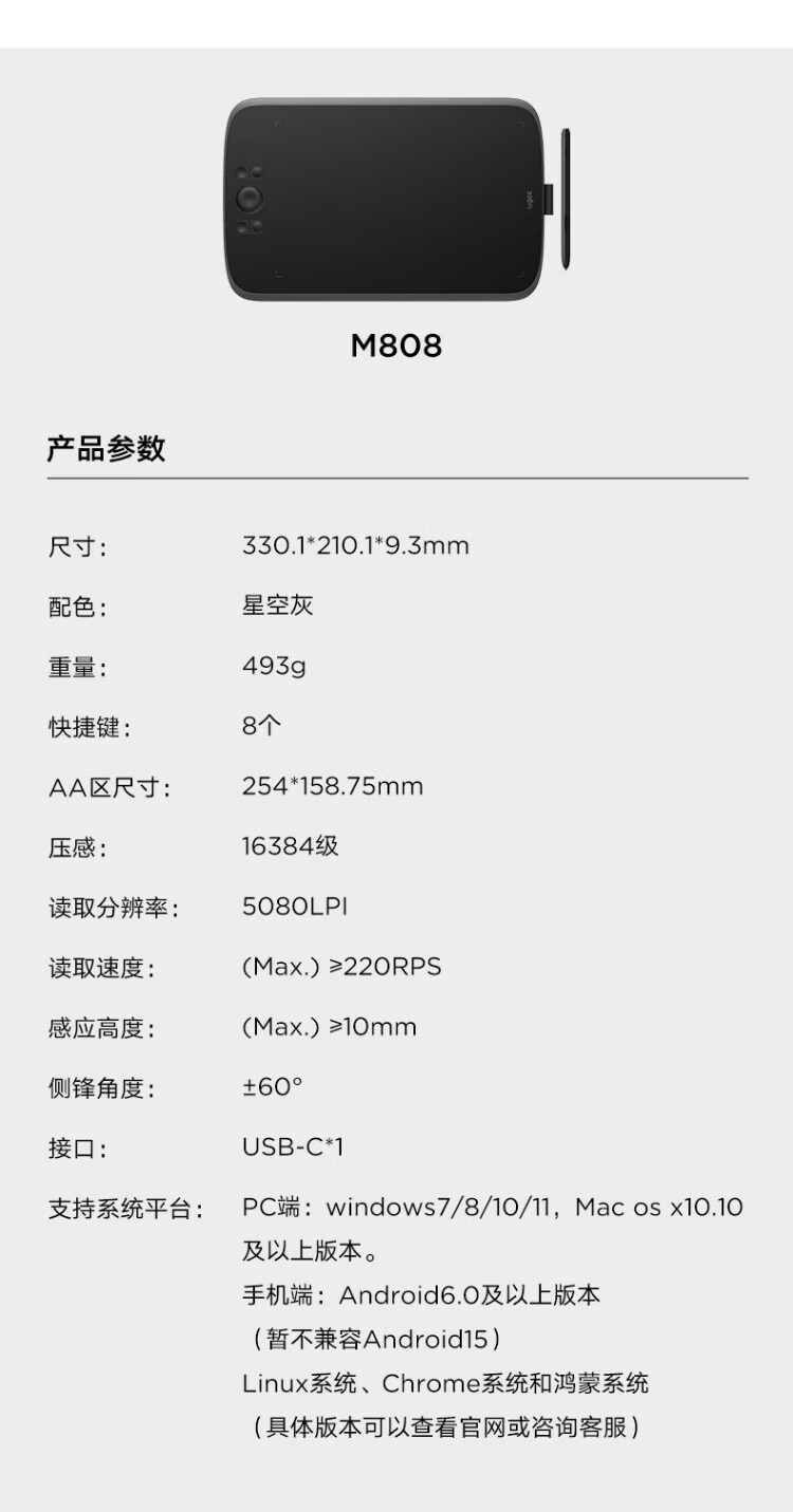 友基(UGEE) M808数位板手绘板网课手写板电子画板可连手机连电脑写字板绘图板建模手写输入板 M808豪华套餐【升级16K压感】