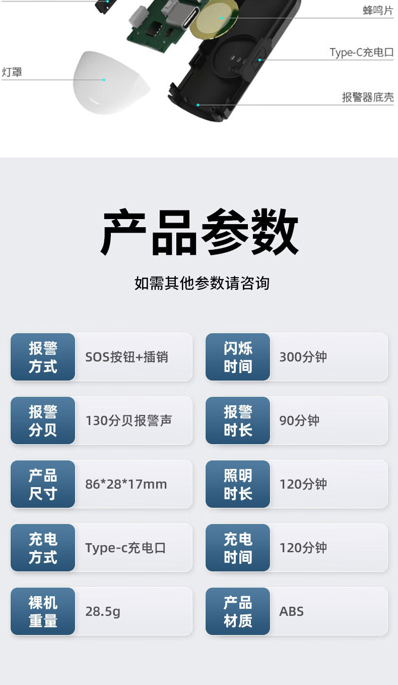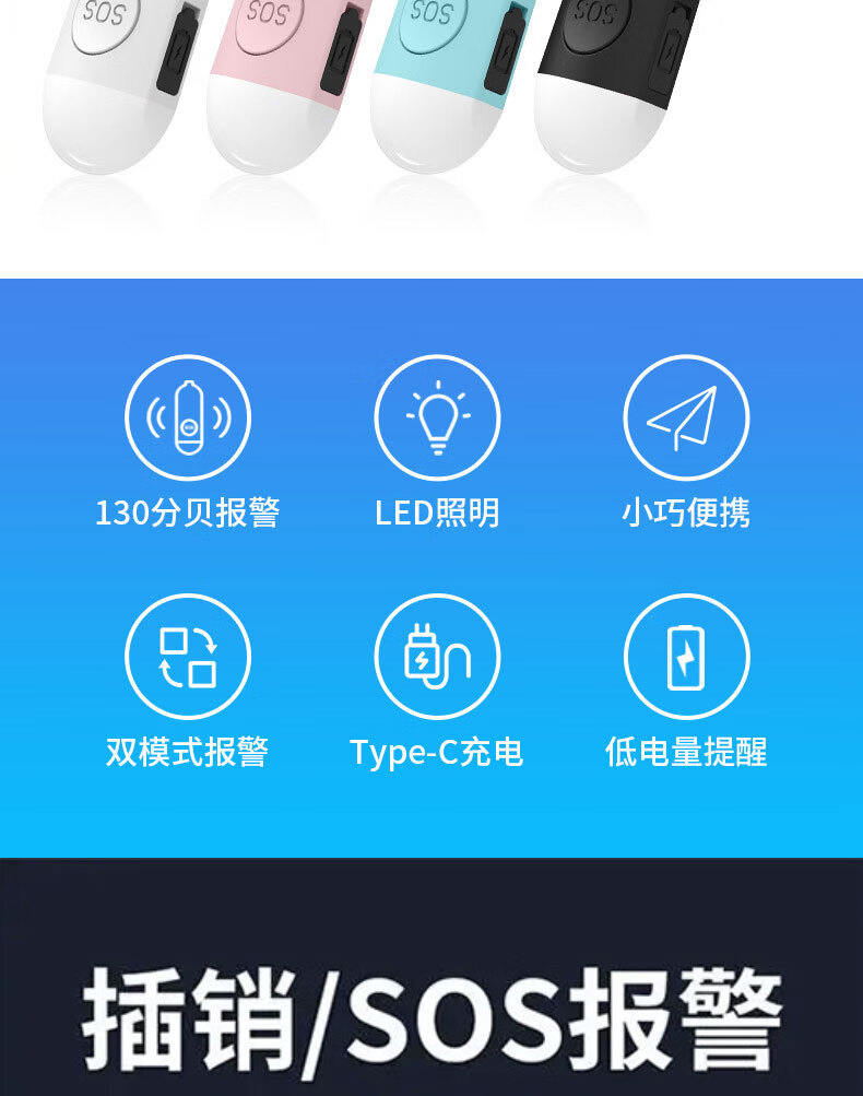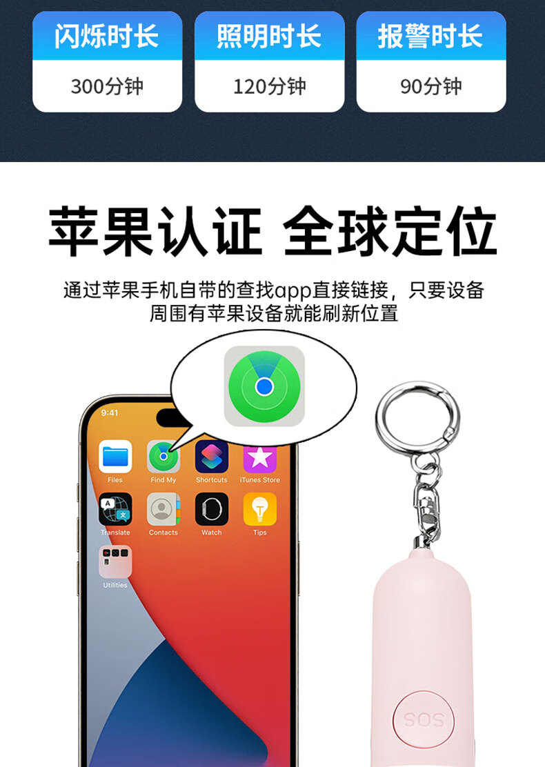 麦律防狼神器女生便携高分贝报警器合法自卫女生防狼神器电灯爆闪定位 蓝色【可定位高分贝警报器】带爆闪灯·大分贝声音