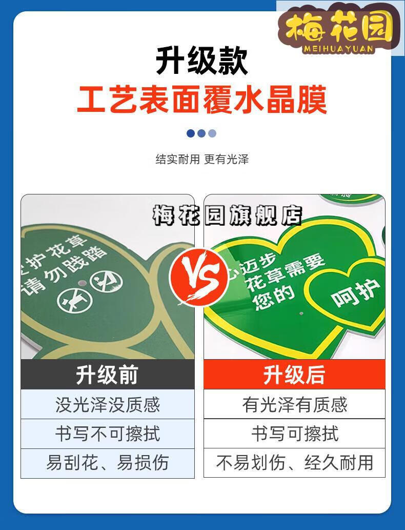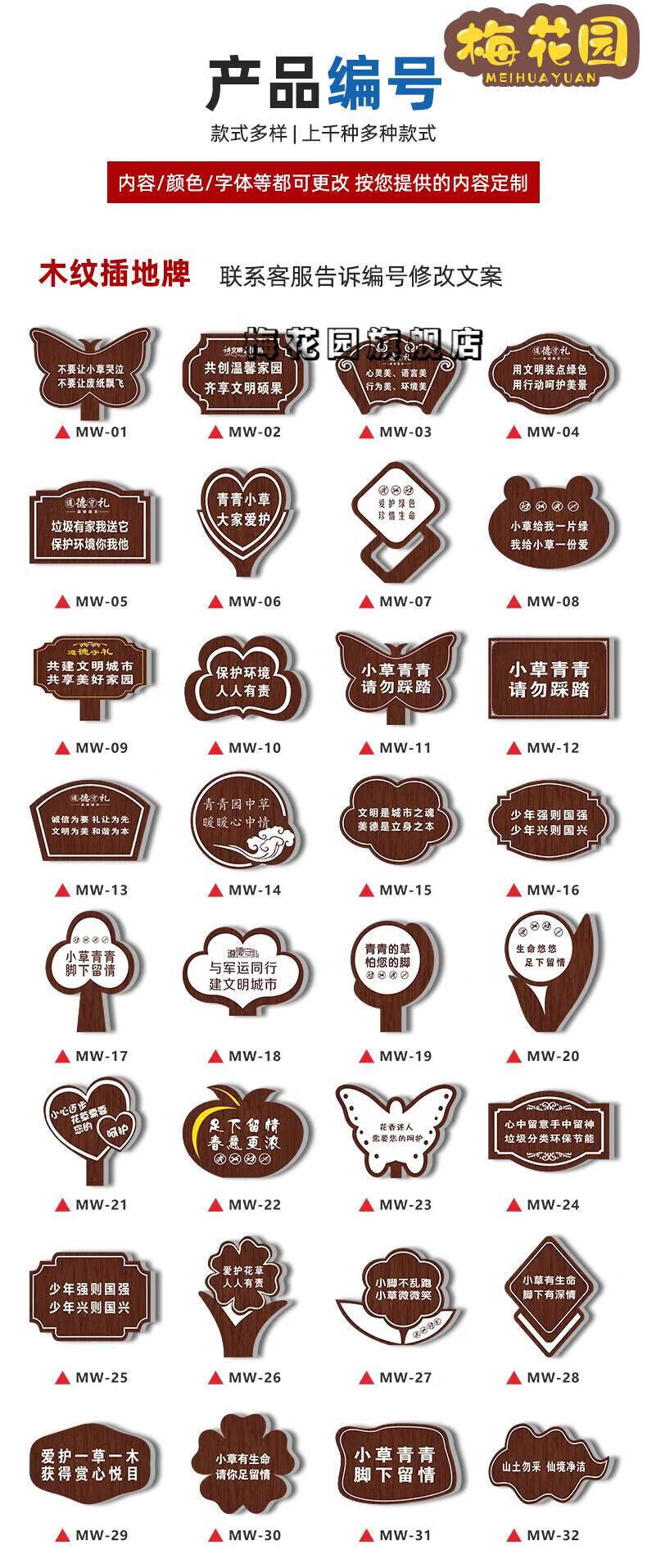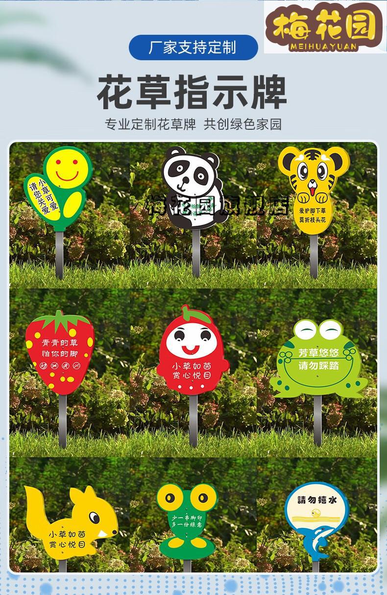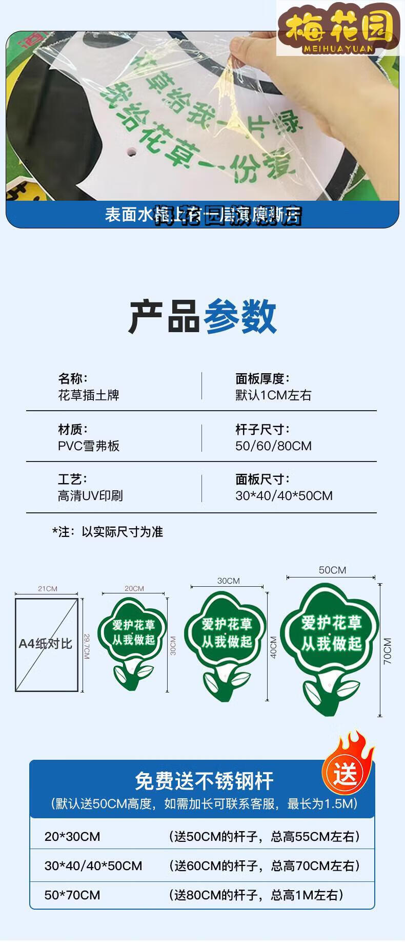 花草提示牌爱护小花草标识牌草坪草地警示牌文明养犬遛狗牵绳牌绿 A-02(表面覆水晶+立杆) 20x30cm