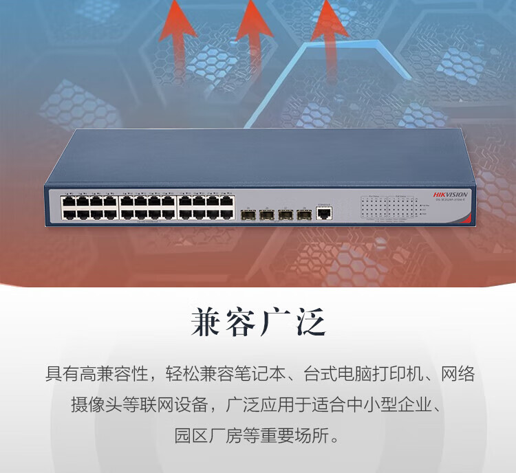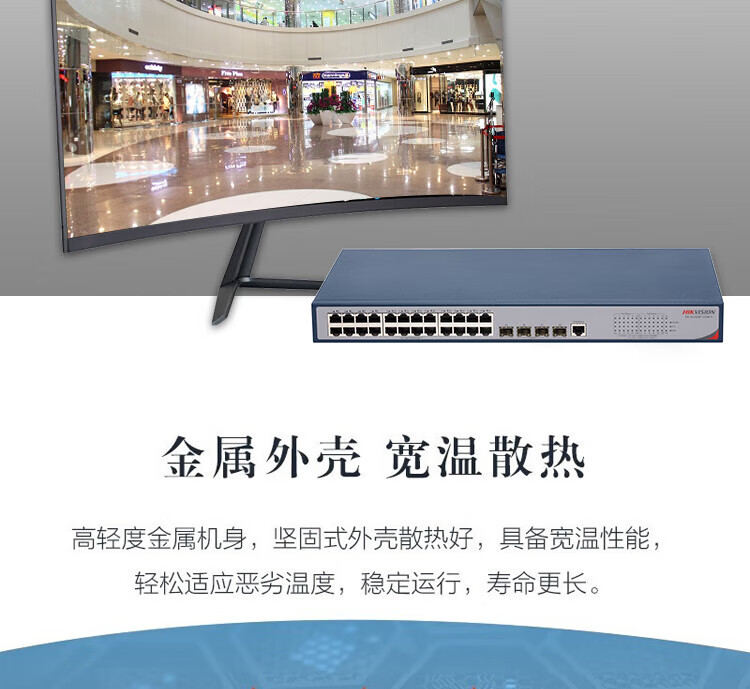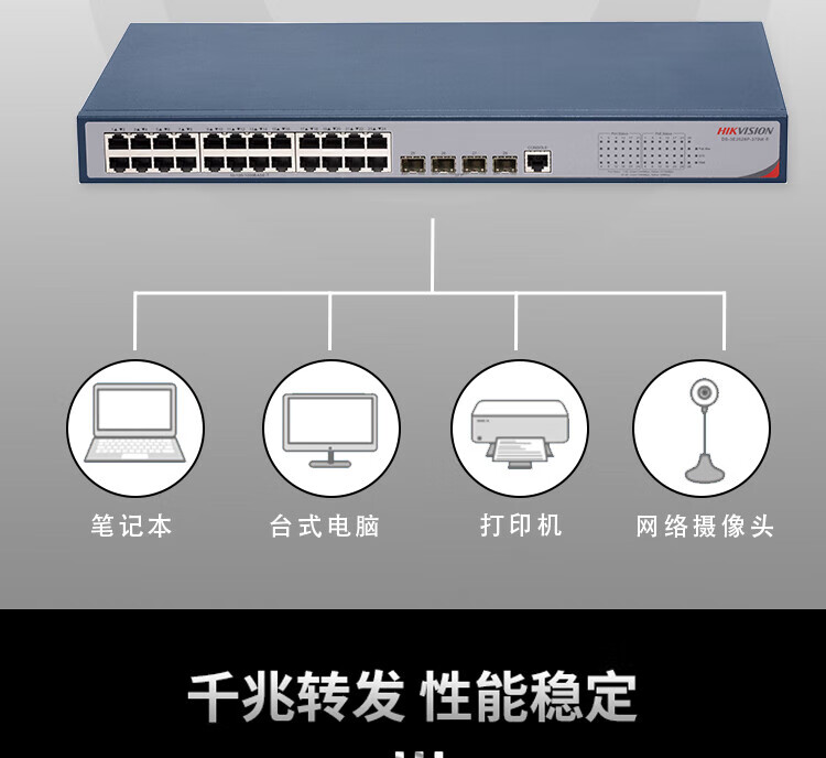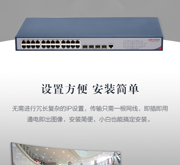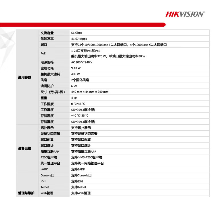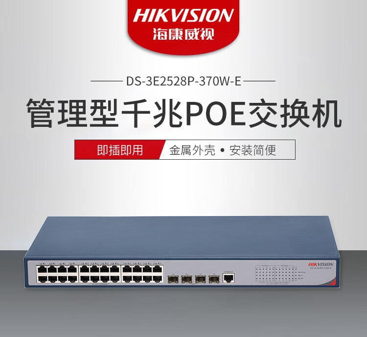 HIKVISION network switch managed layer 2 Gigabit POE switch 24 Gigabit PoE electrical ports 4 Gigabit optical ports built-in lightning protection DS-3E2528P-370W-E 6KV anti-surge | VLAN | port isolation | storm control