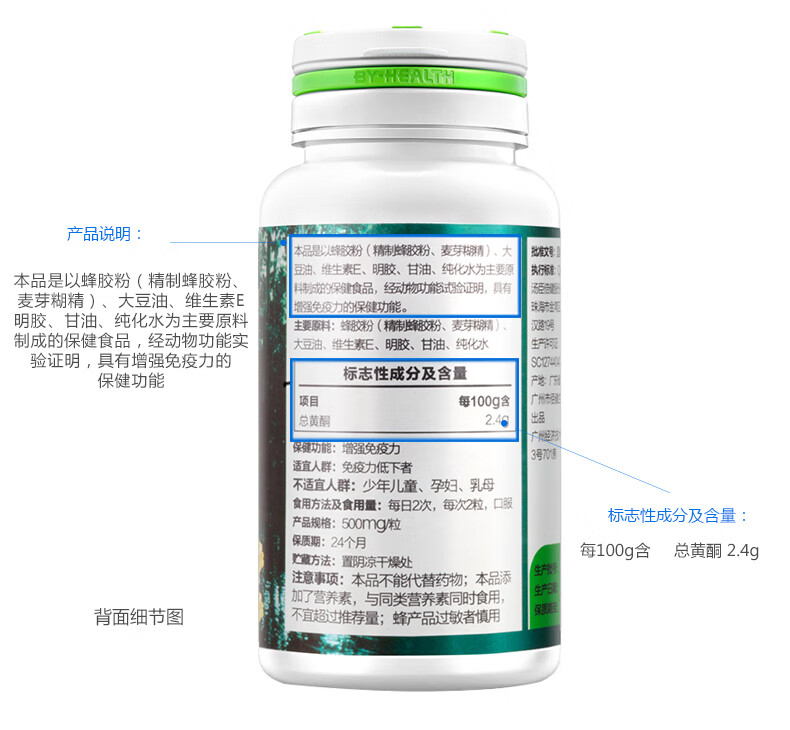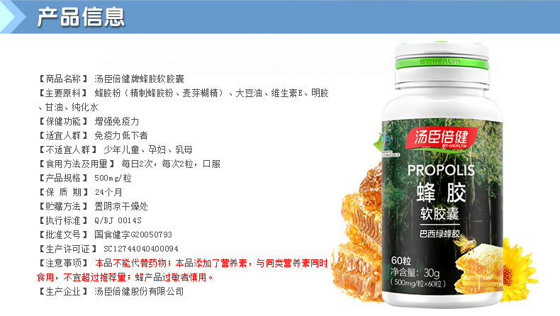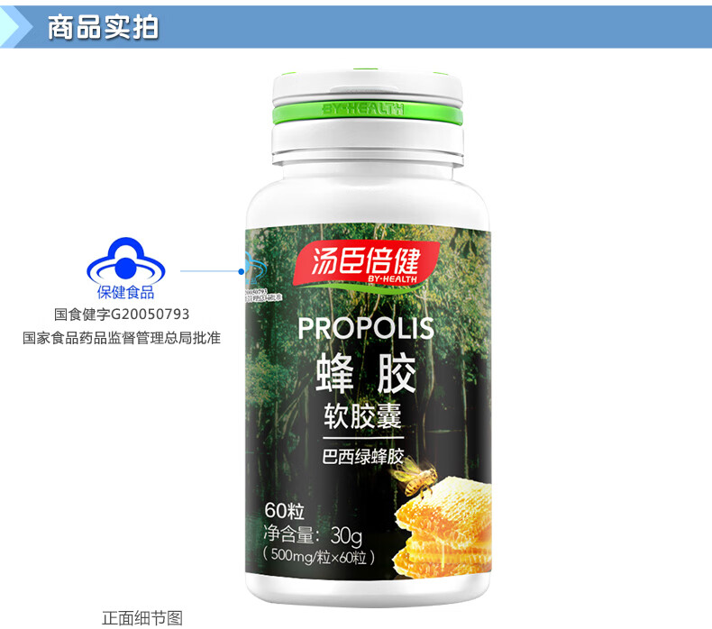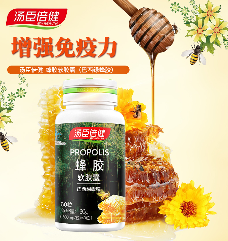 汤臣倍健蜂胶软胶囊巴西绿蜂胶 500mg*60粒增强免疫力适宜免疫力低下者 2盒