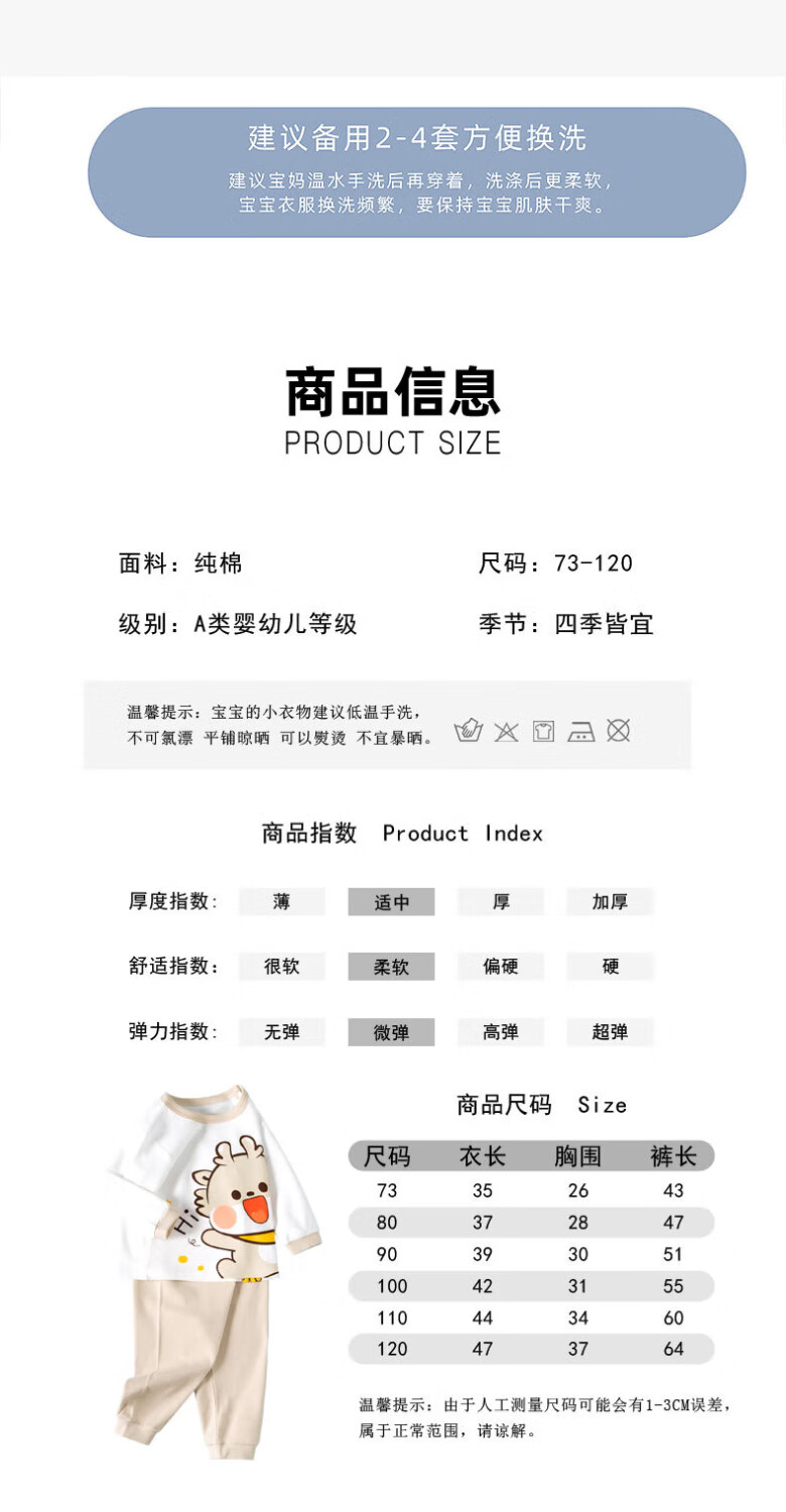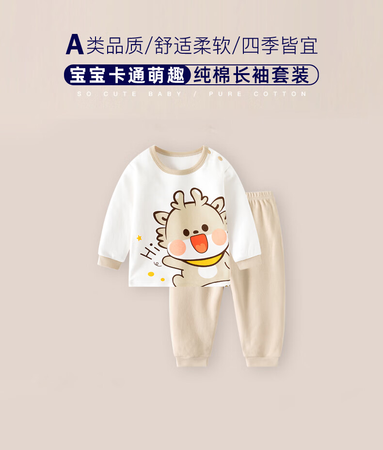 迪迪熊日记(DIDIXIONGRIJI)儿童套装春秋款宝宝秋衣秋裤纯棉一岁小孩衣服长袖男女童分体套六 长袖套装小咖龙 90 cm(24M)