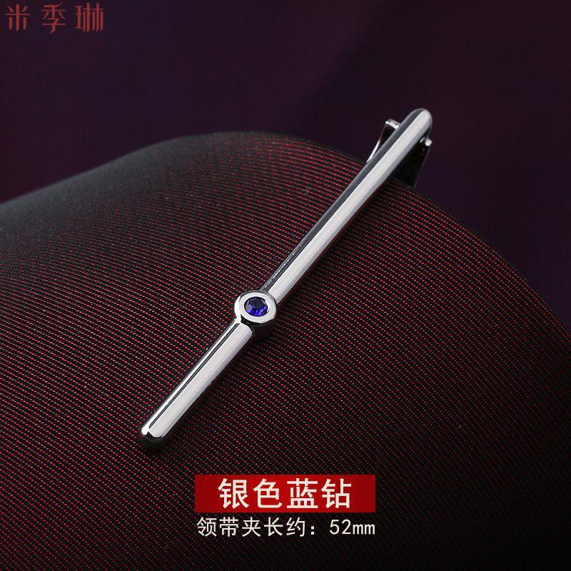 Limeng Men's Gold Silver Tie Clip Business Sub-Simple Korean Metal Men and Women Gunmetal Blue Diamond Model (Simple Packaging Without Box)