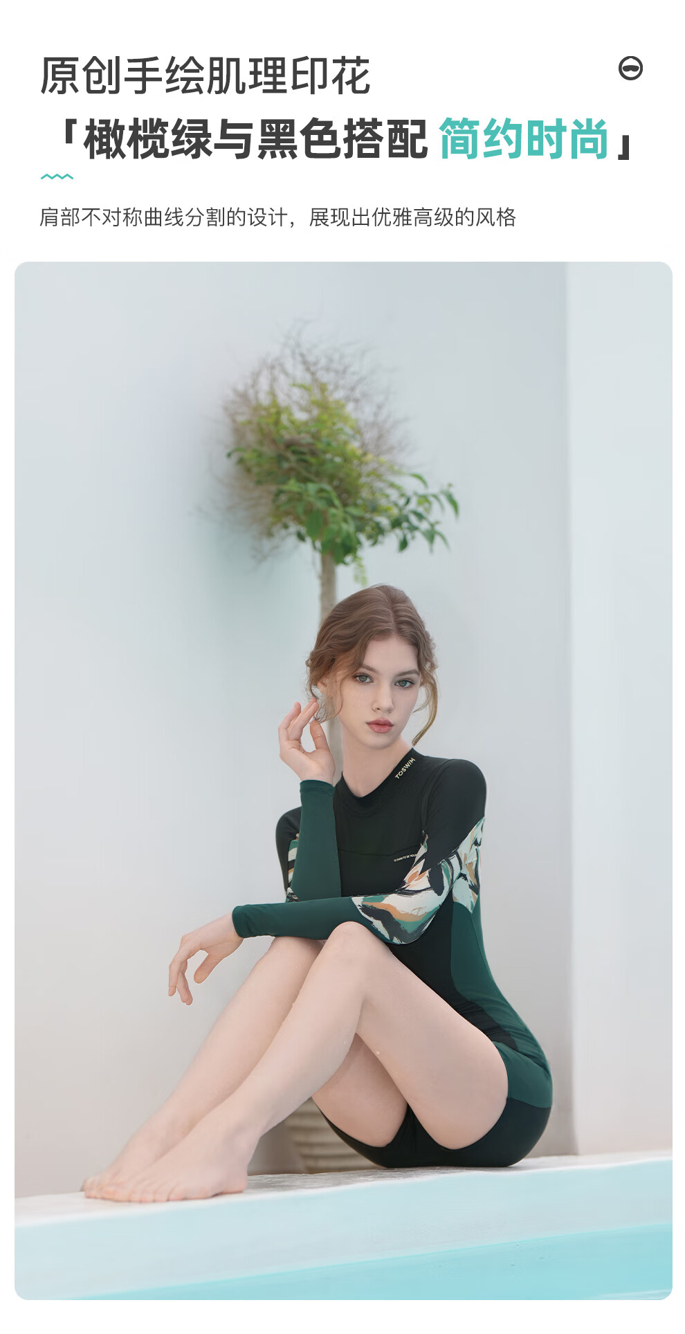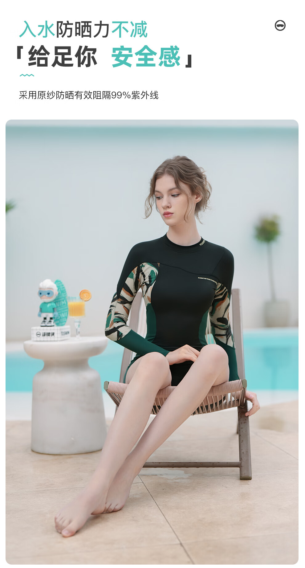 拓胜(TOSWIM)连体长袖平角泳衣女高级感游泳衣保守长袖防晒 游泳五件泳衣+泳镜+泳帽+浴巾+包 L 【高165-169cm/重51-59kg】