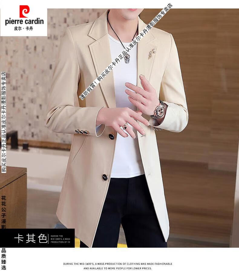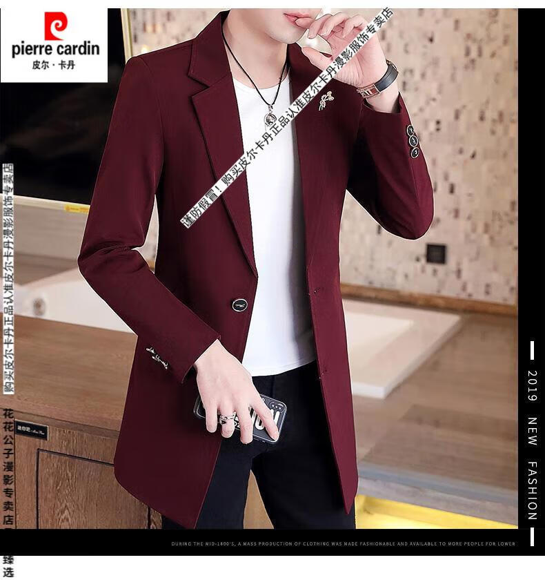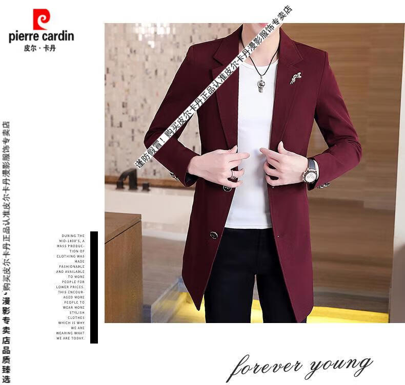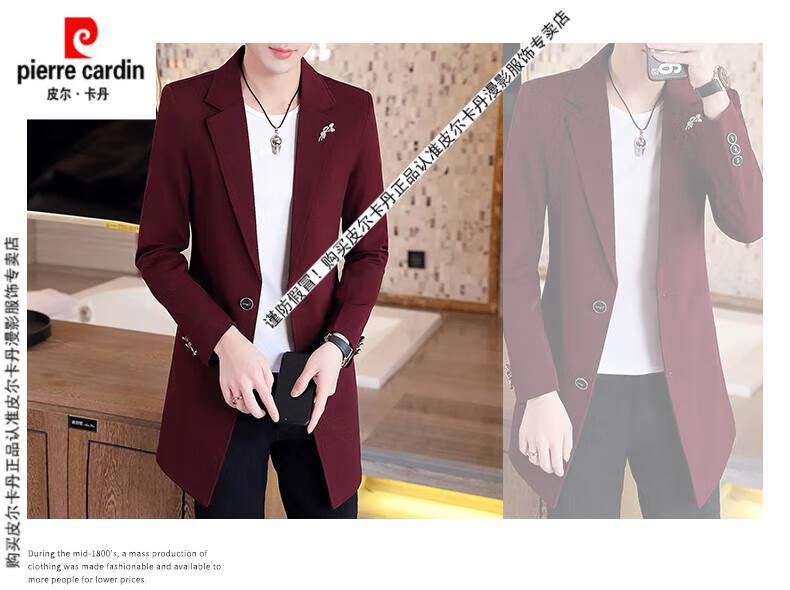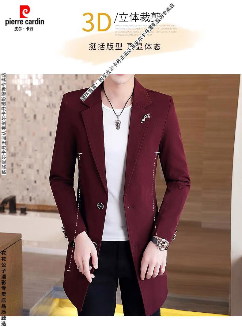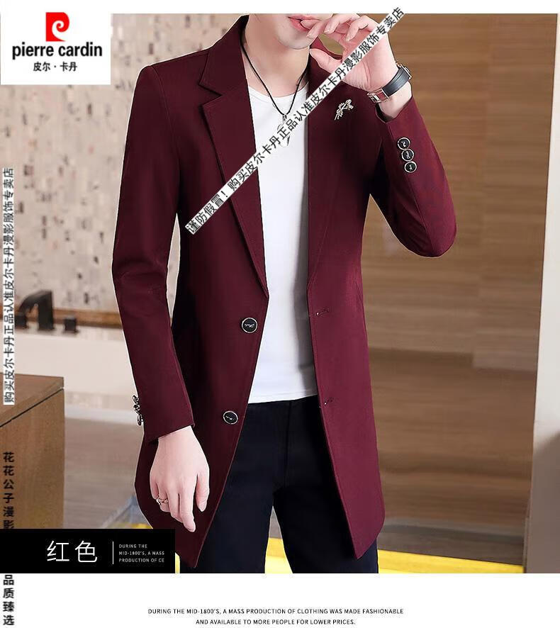 Pierre Cardin windbreaker men's 2024 new mid-length spring and autumn coat casual trendy men's handsome thin spring and autumn day coat burgundy L 170