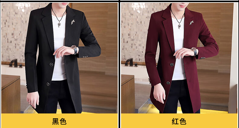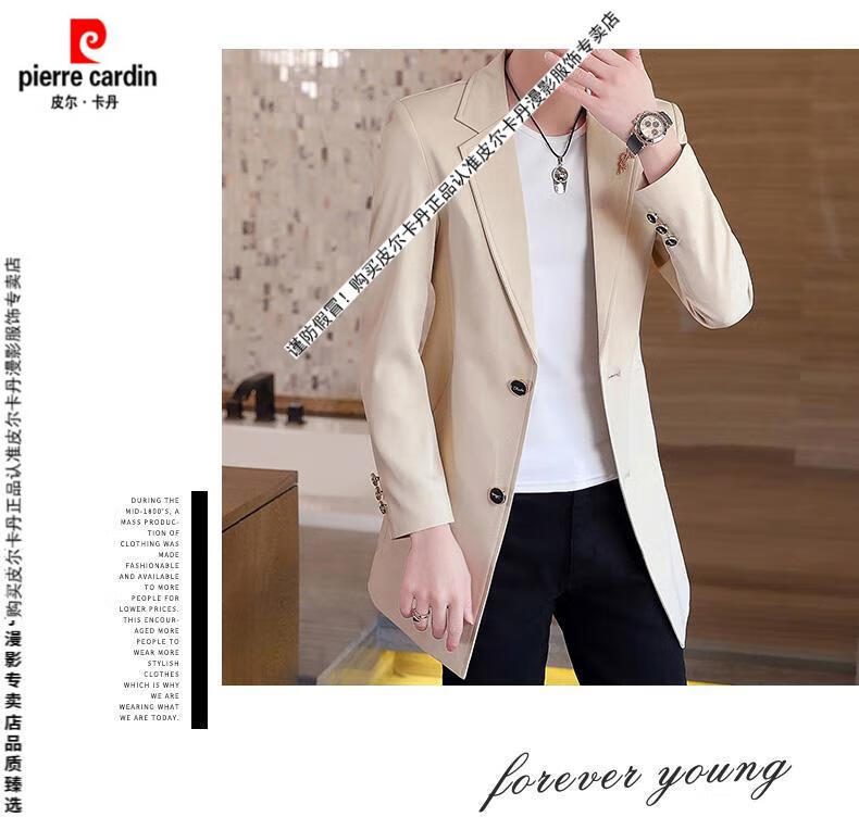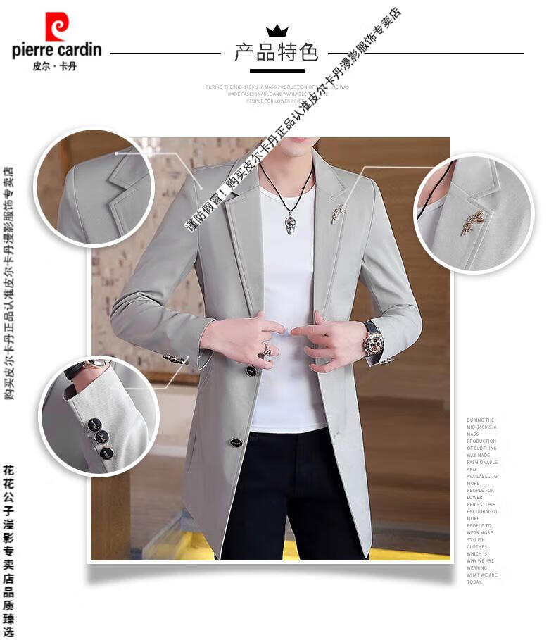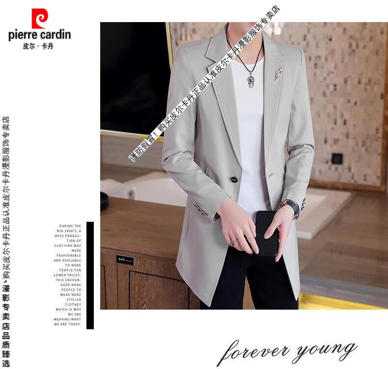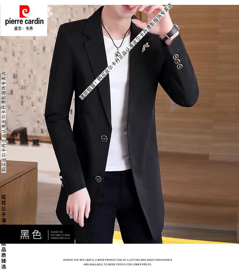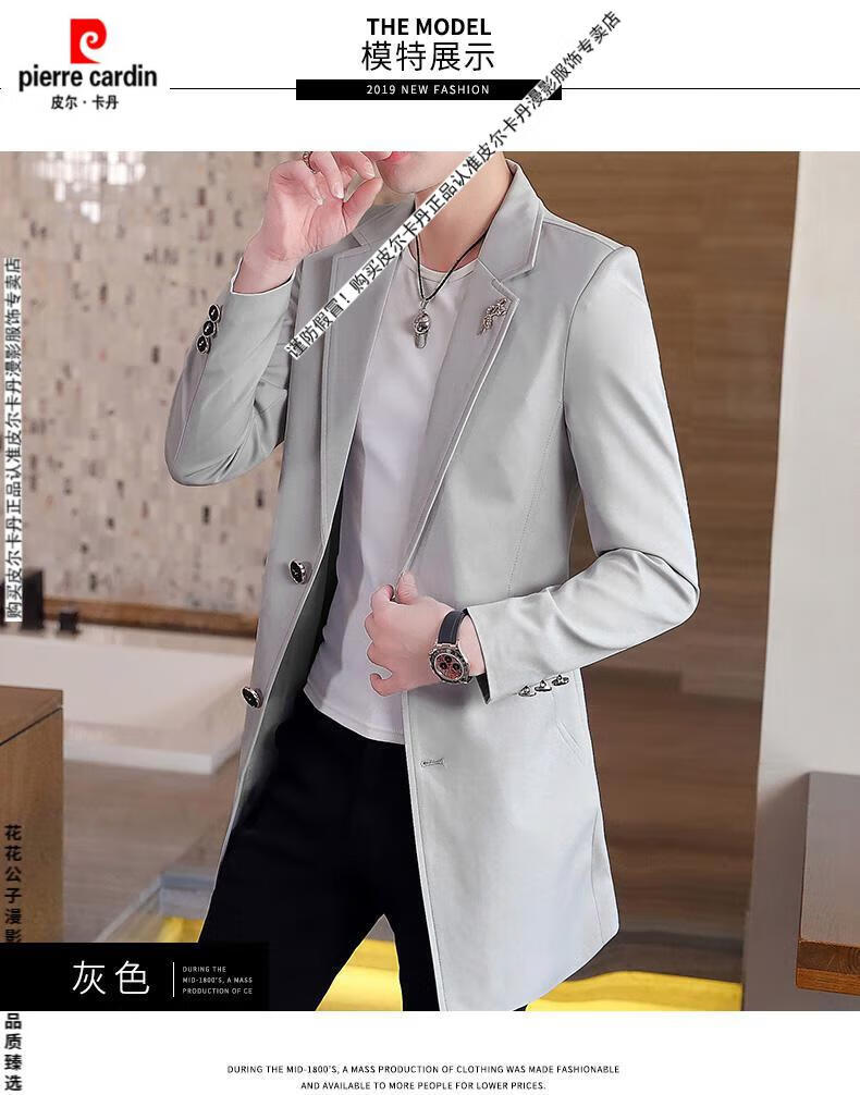 Pierre Cardin windbreaker men's 2024 new mid-length spring and autumn coat casual trendy men's handsome thin spring and autumn day coat burgundy L 170