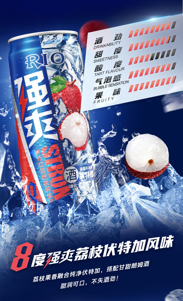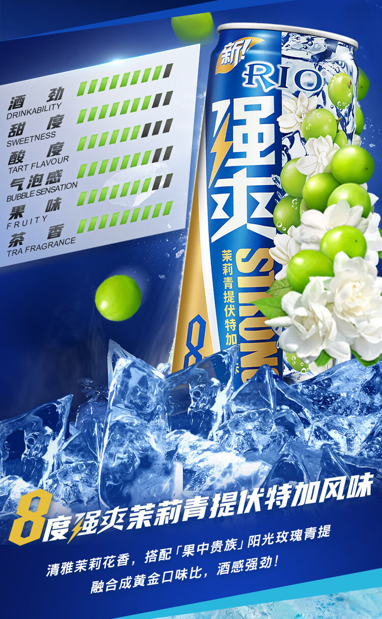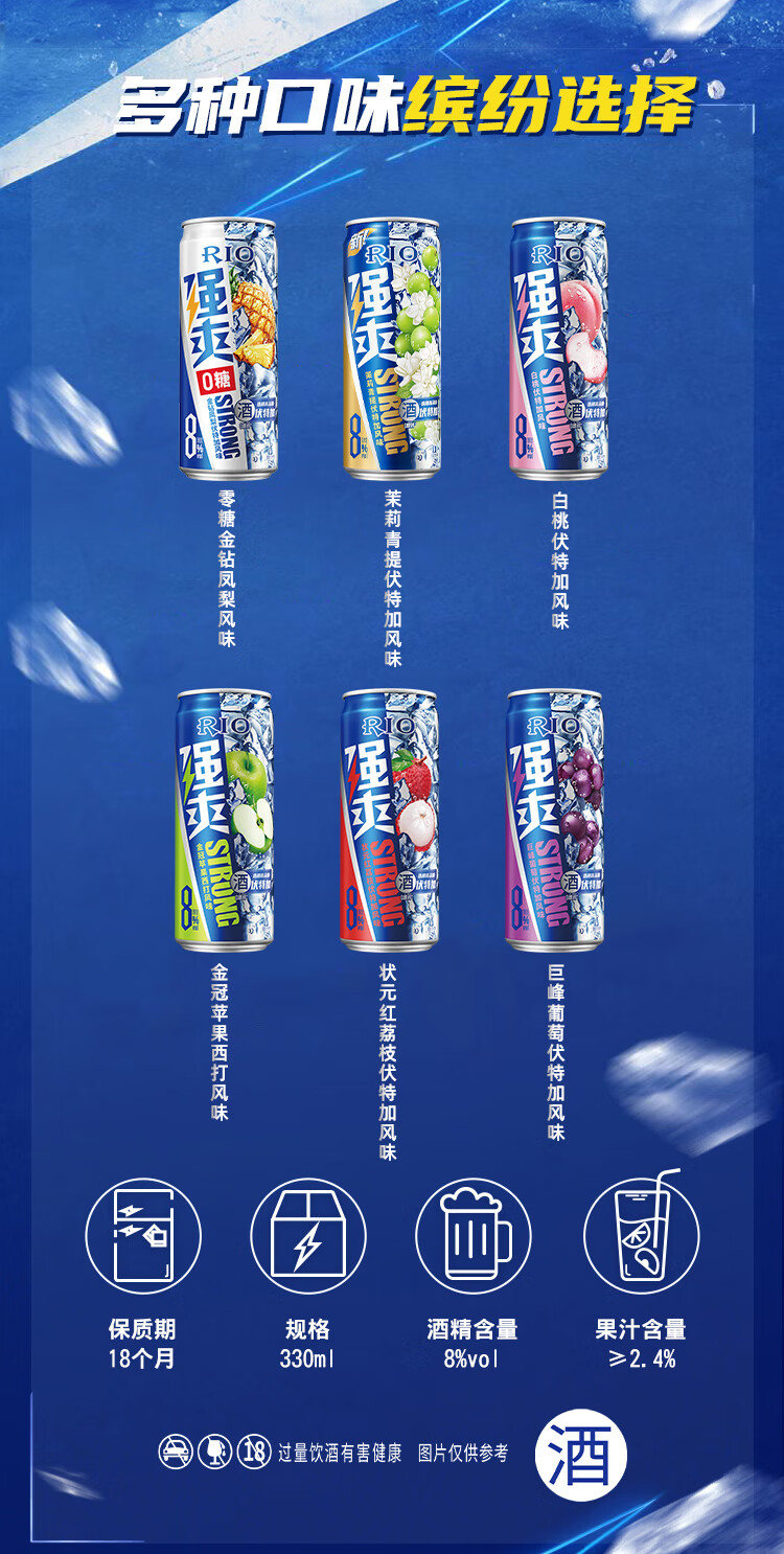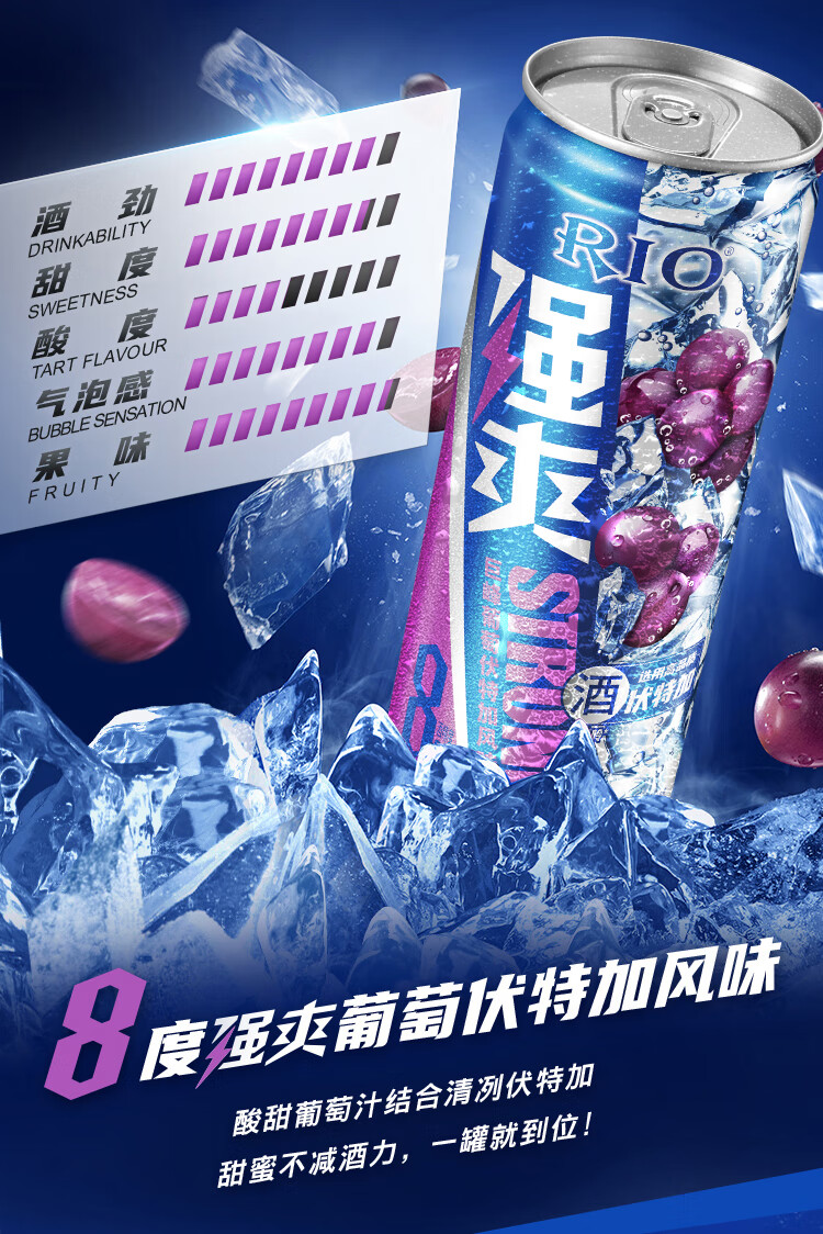 RIO Strong 8 Degree Canned Pre-mixed Cocktail Wine 330ml (new and old packaging randomly distributed) 12 cans combination (2 each of 6 flavors) 330ml