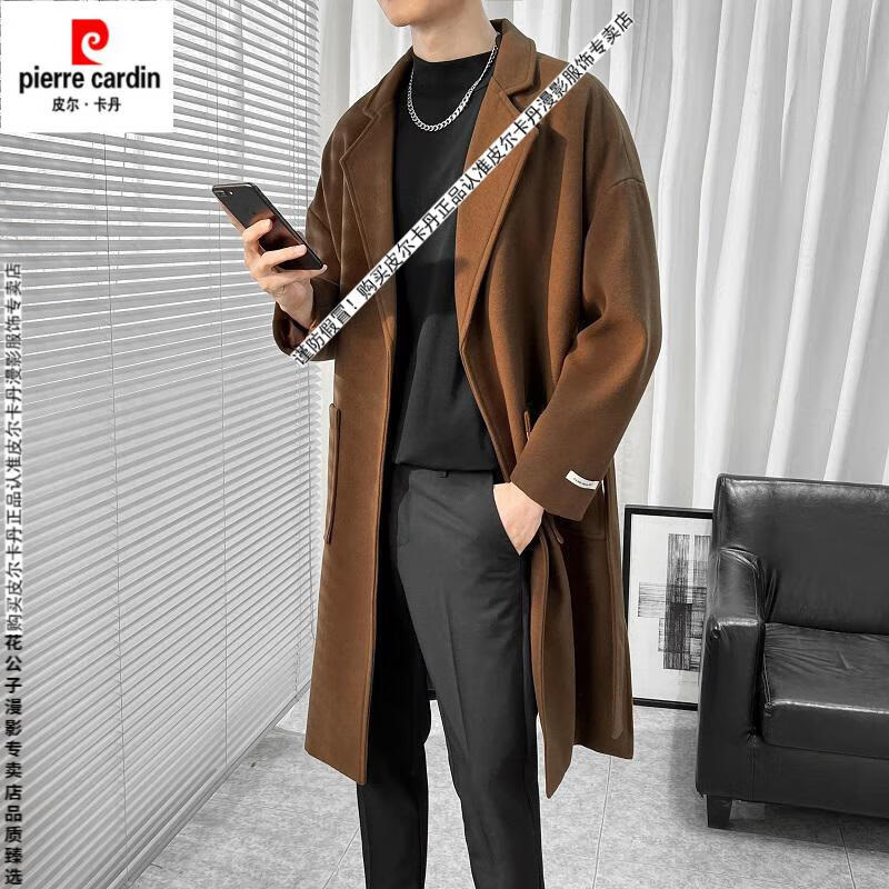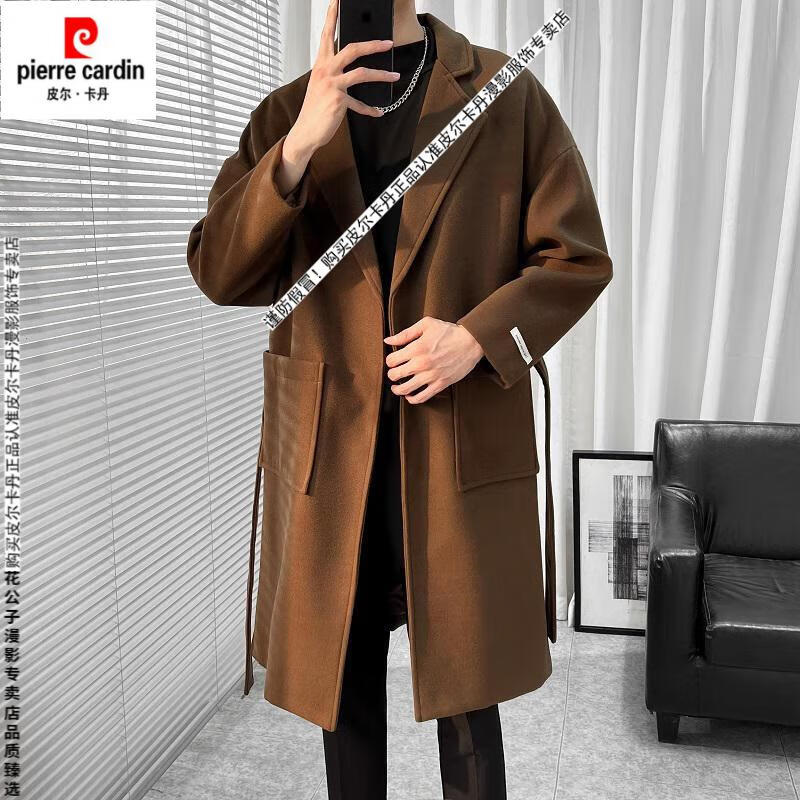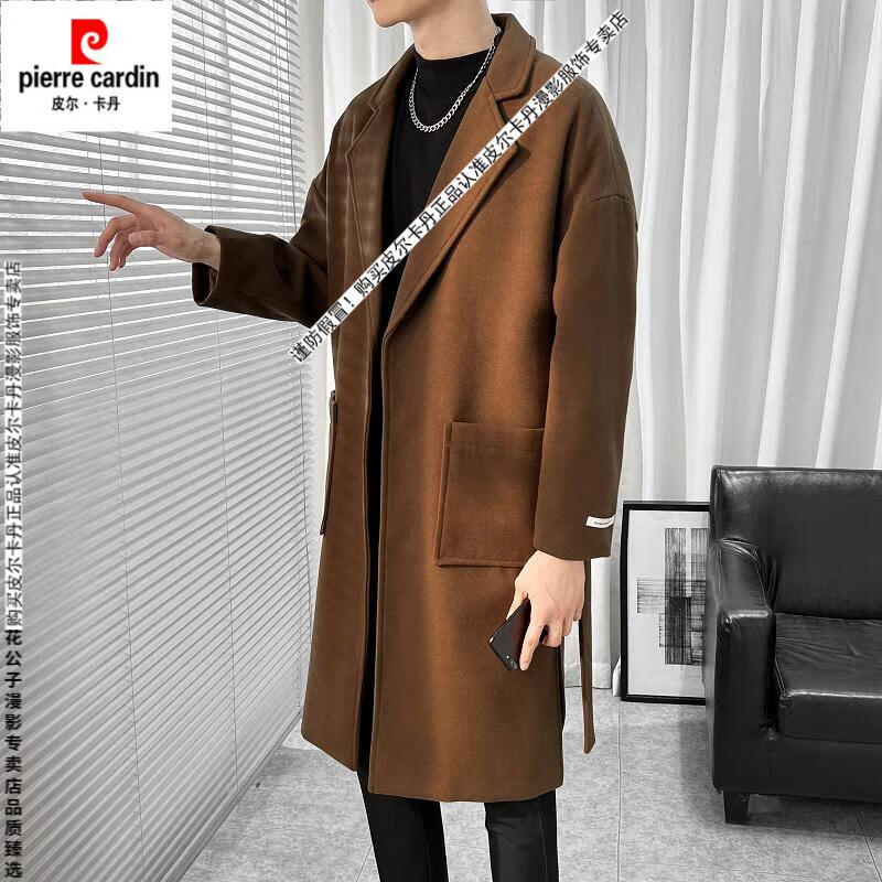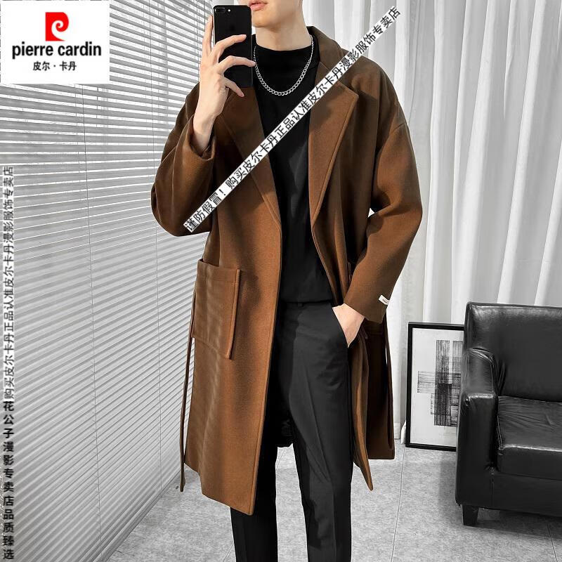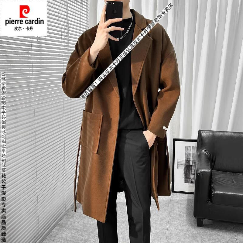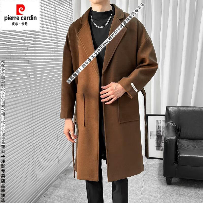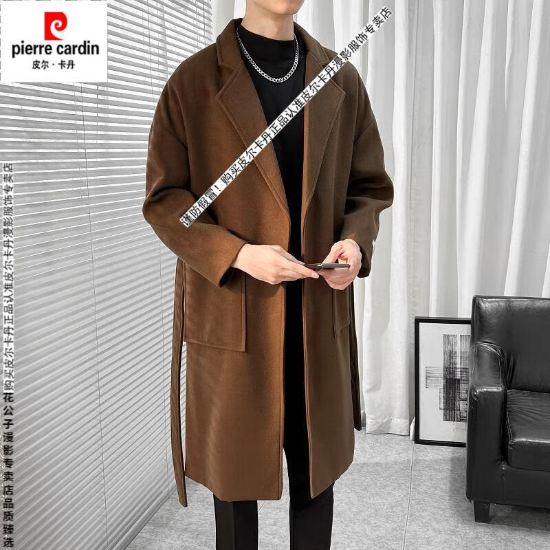 Pierre Cardin British Windbreaker Jacket Men's Mid-Length Spring and Autumn Fatty Large Size Woolen Over-the-Knee High-Quality Men's Kensington Coat Khaki 5XL