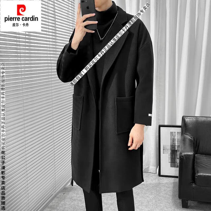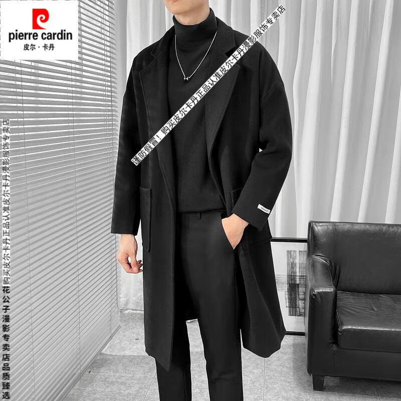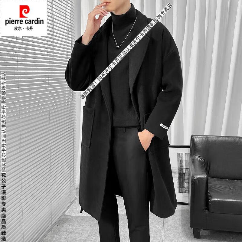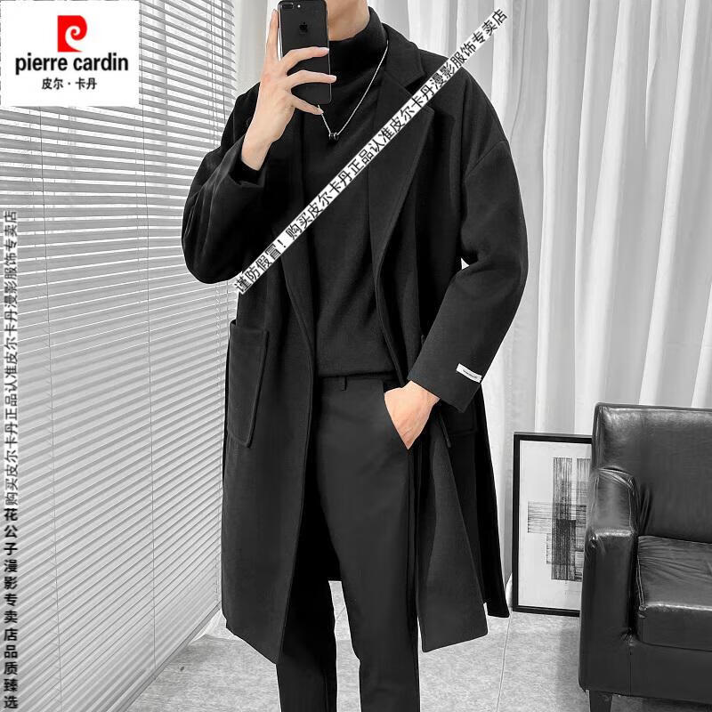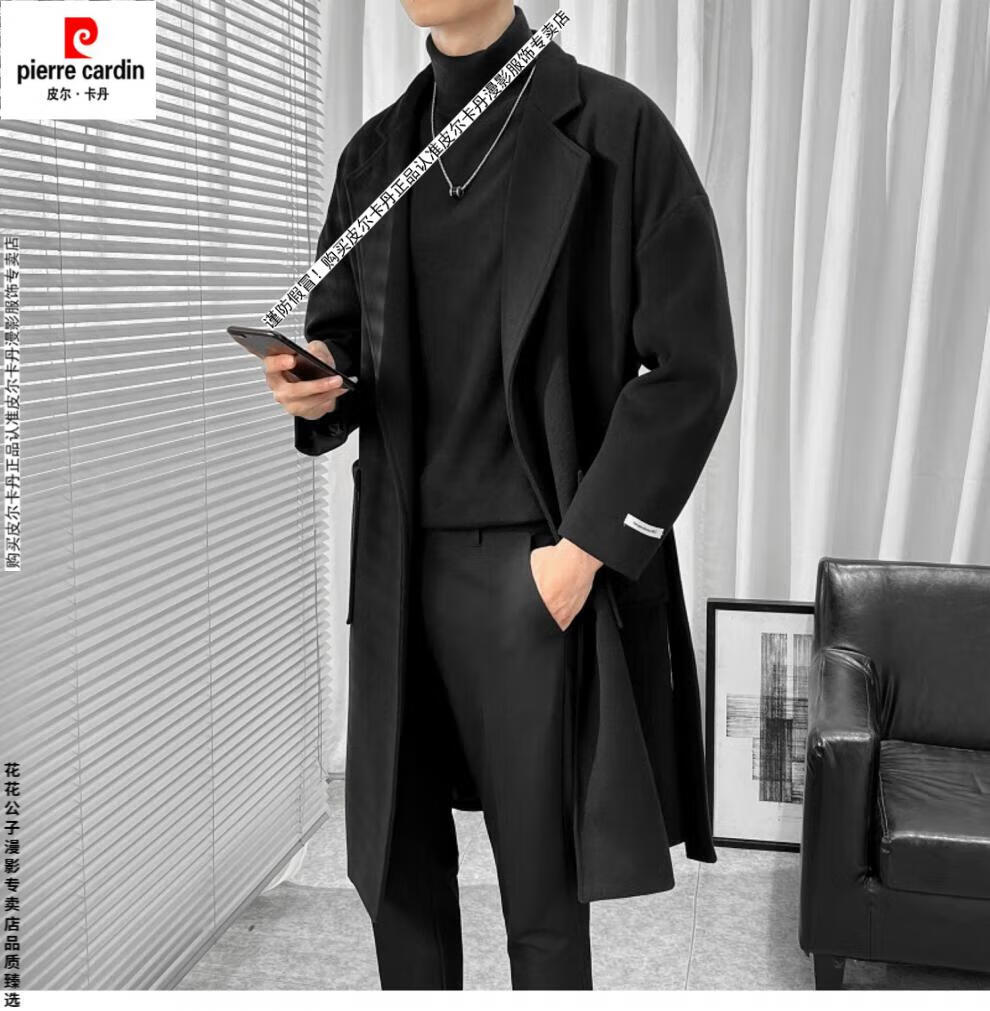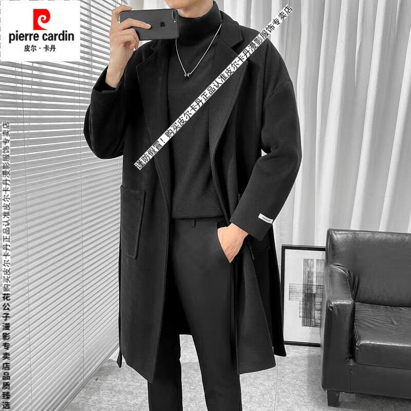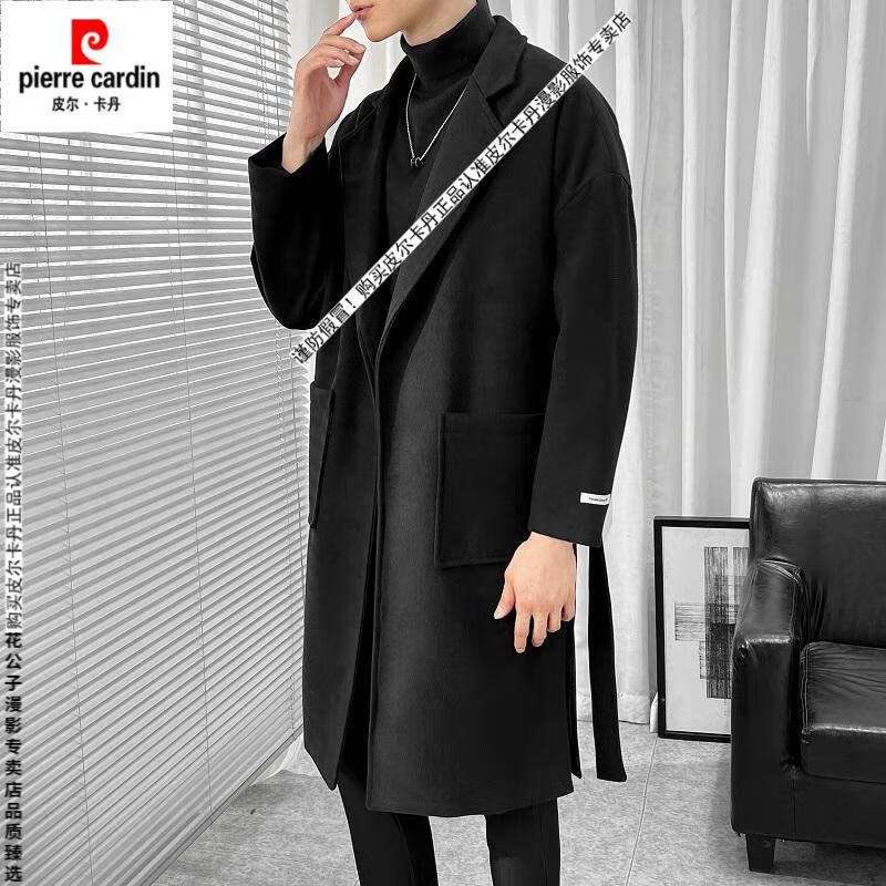 Pierre Cardin British Windbreaker Jacket Men's Mid-Length Spring and Autumn Fatty Large Size Woolen Over-the-Knee High-Quality Men's Kensington Coat Khaki 5XL