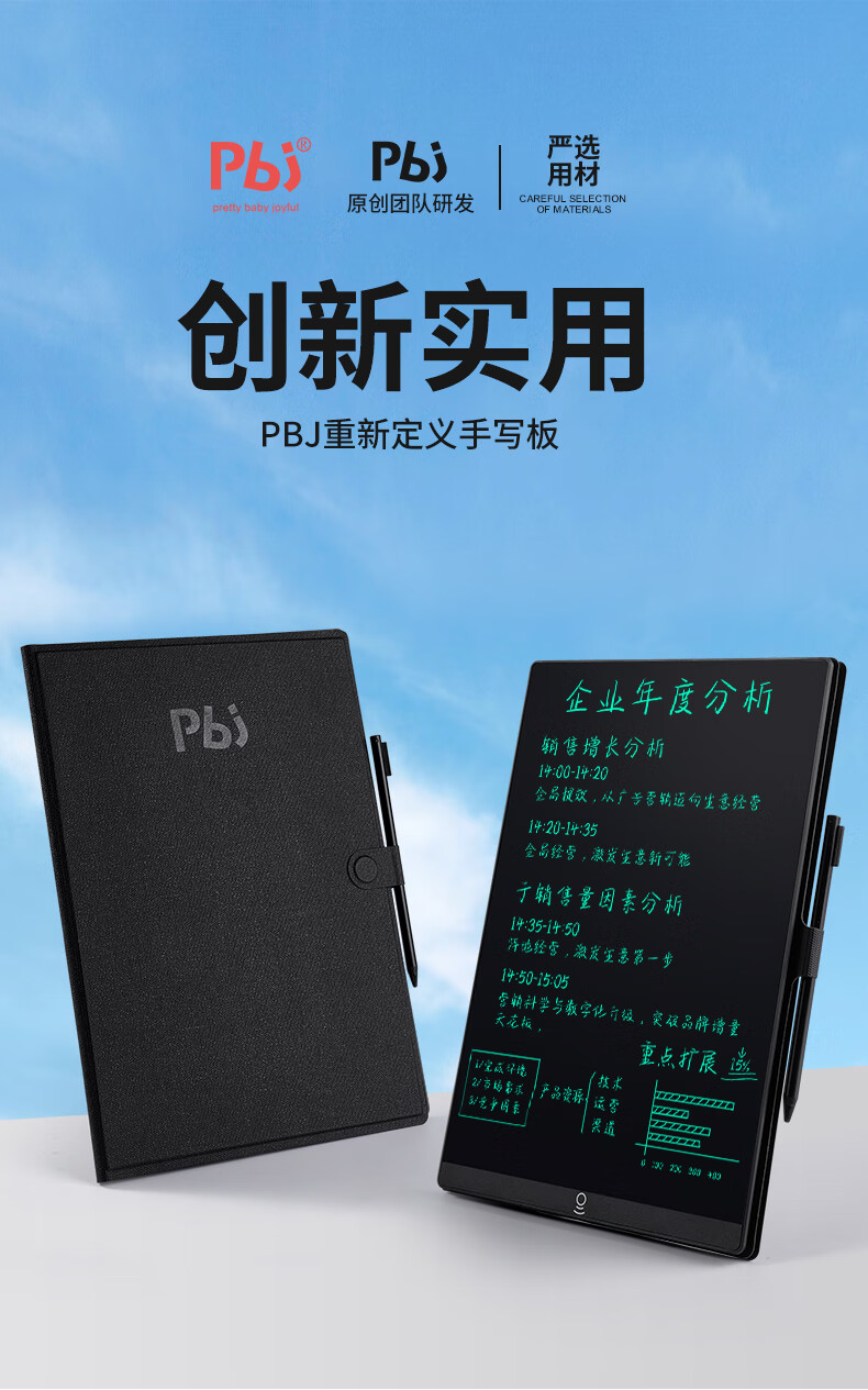 PBJ液晶手写板细笔迹不扩散带皮套高亮屏办公教育草稿板留言板写字板学生黑板手绘画画板定制图案LOGO 15英寸双屏幕细笔迹黄色+保护套