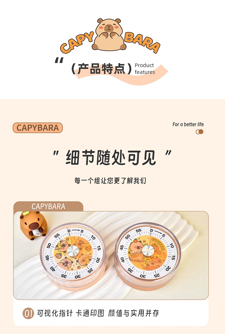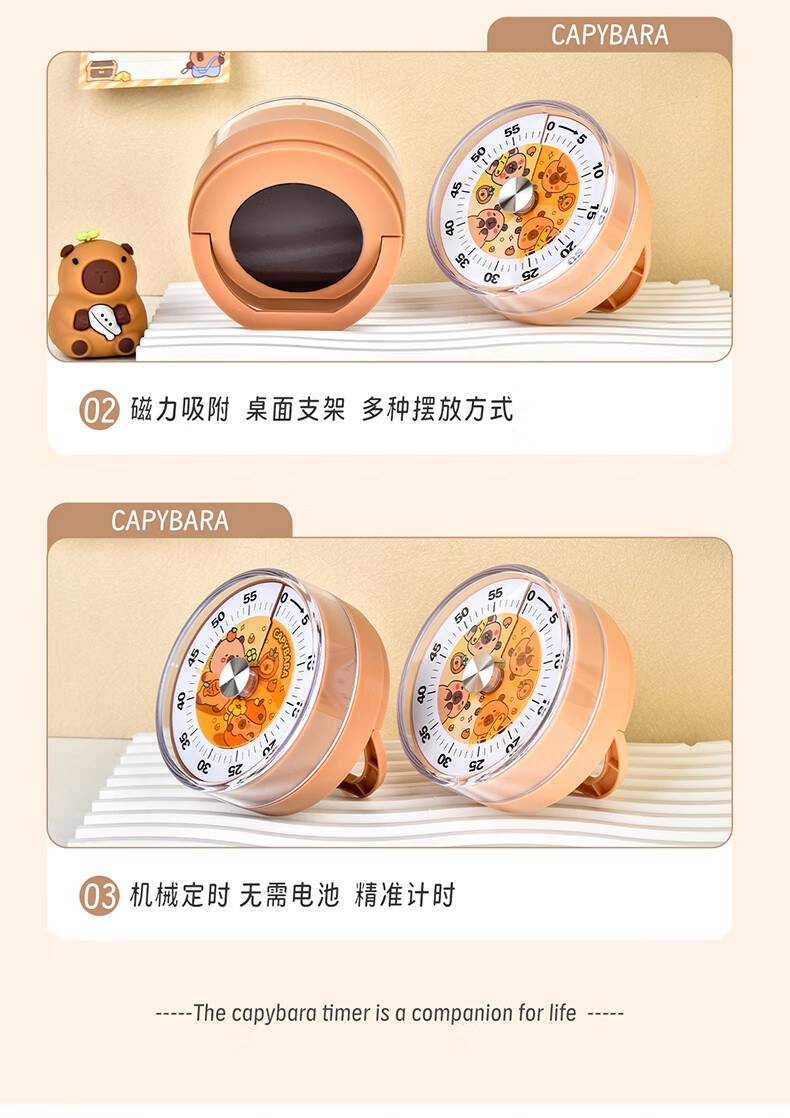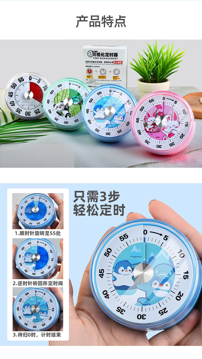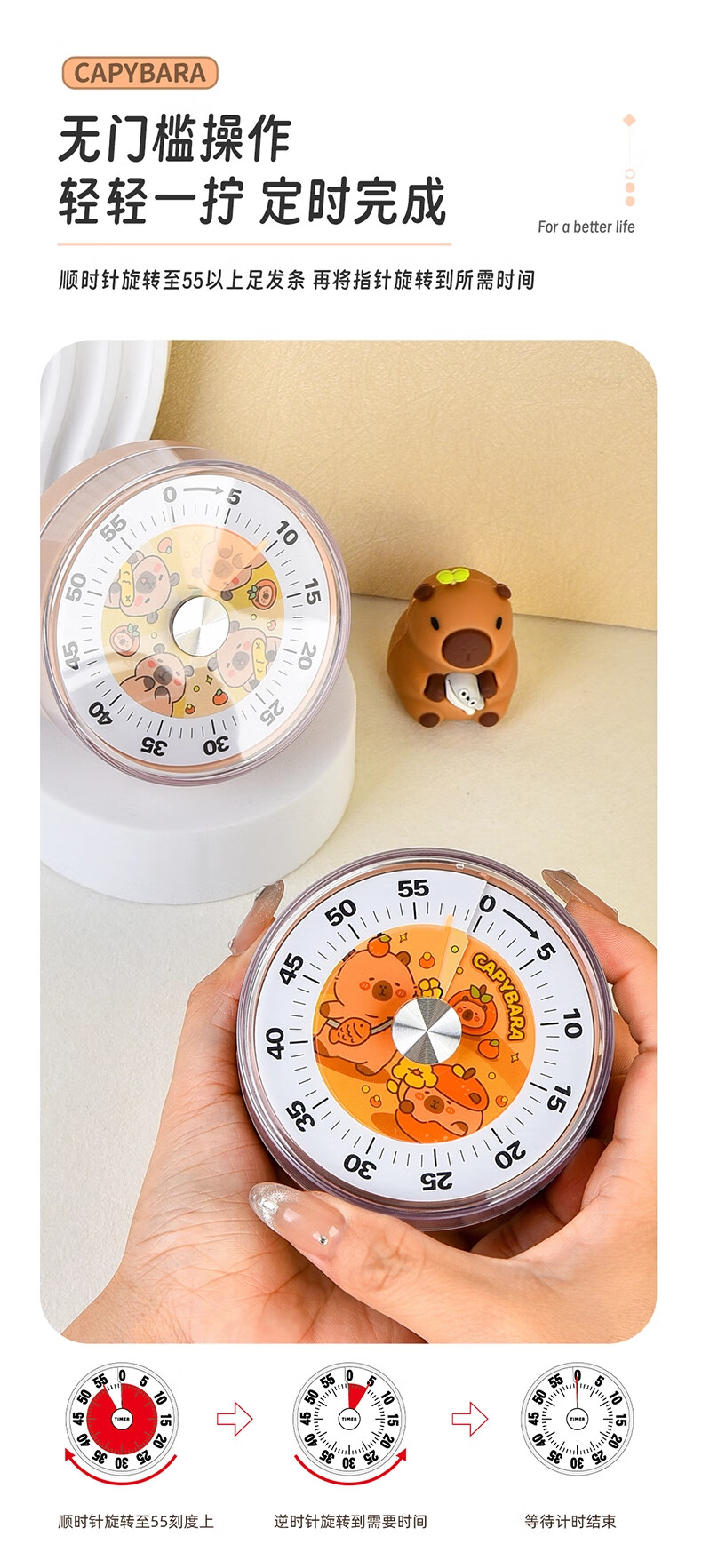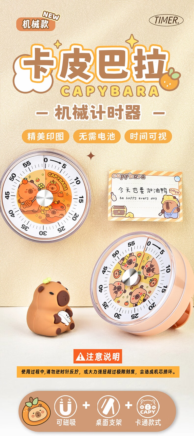 拜杰厨房计时器机械提醒学生学习定时旋转闹钟秒表磁铁磁吸式 白色表盘【经典款】磁吸设计