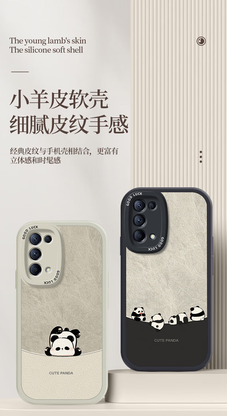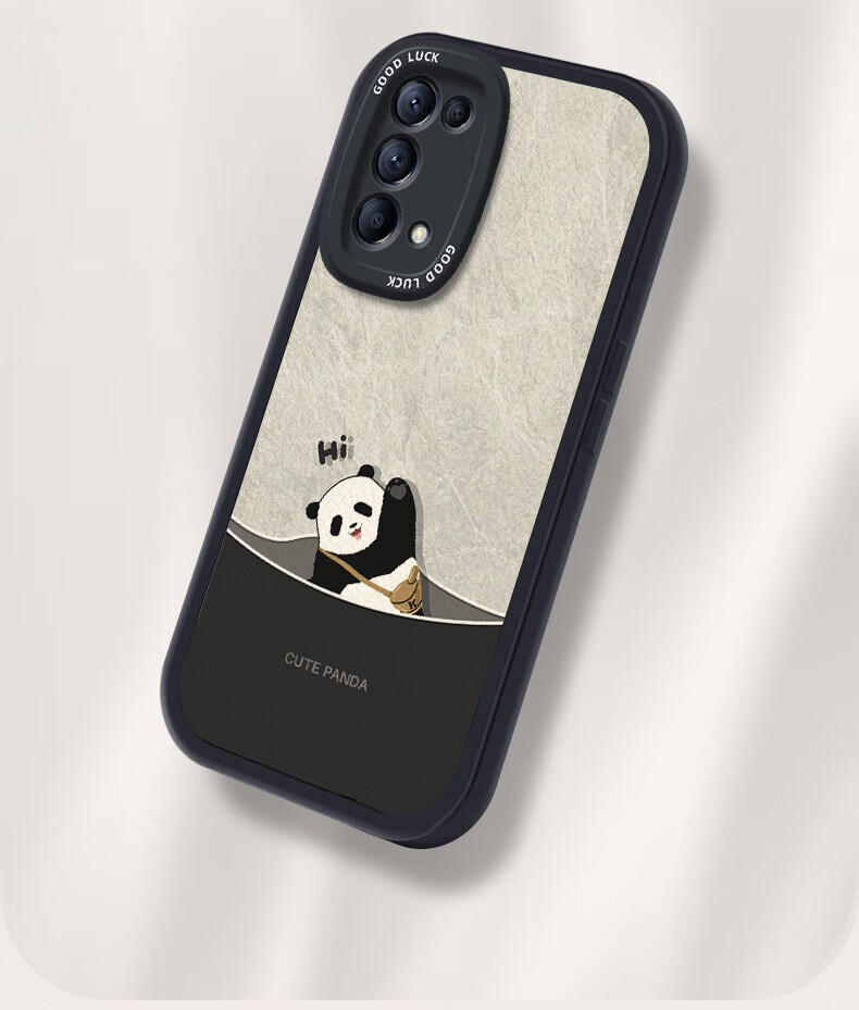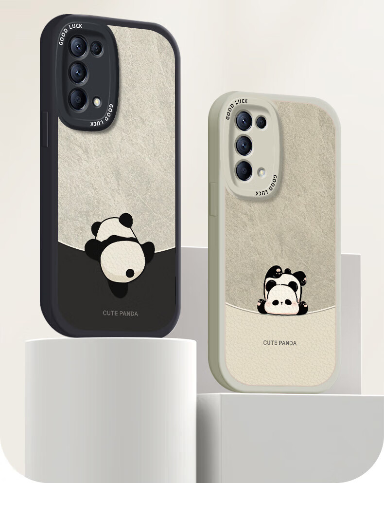 Daimu geeignet für opporeno5/pro/+ Handyhülle Reno5k All-Inclusive Anti-Fall neues Cartoon-Silikon-Ledermuster Softshell-Panda für Männer und Frauen Antikweiß umgekehrter Panda weiß Reno5/5k