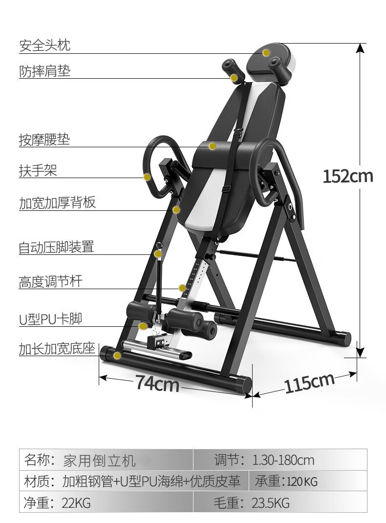 Right guest inversion machine home indoor foldable inversion device cervical and lumbar spine stretcher fitness exercise equipment upgraded black and white