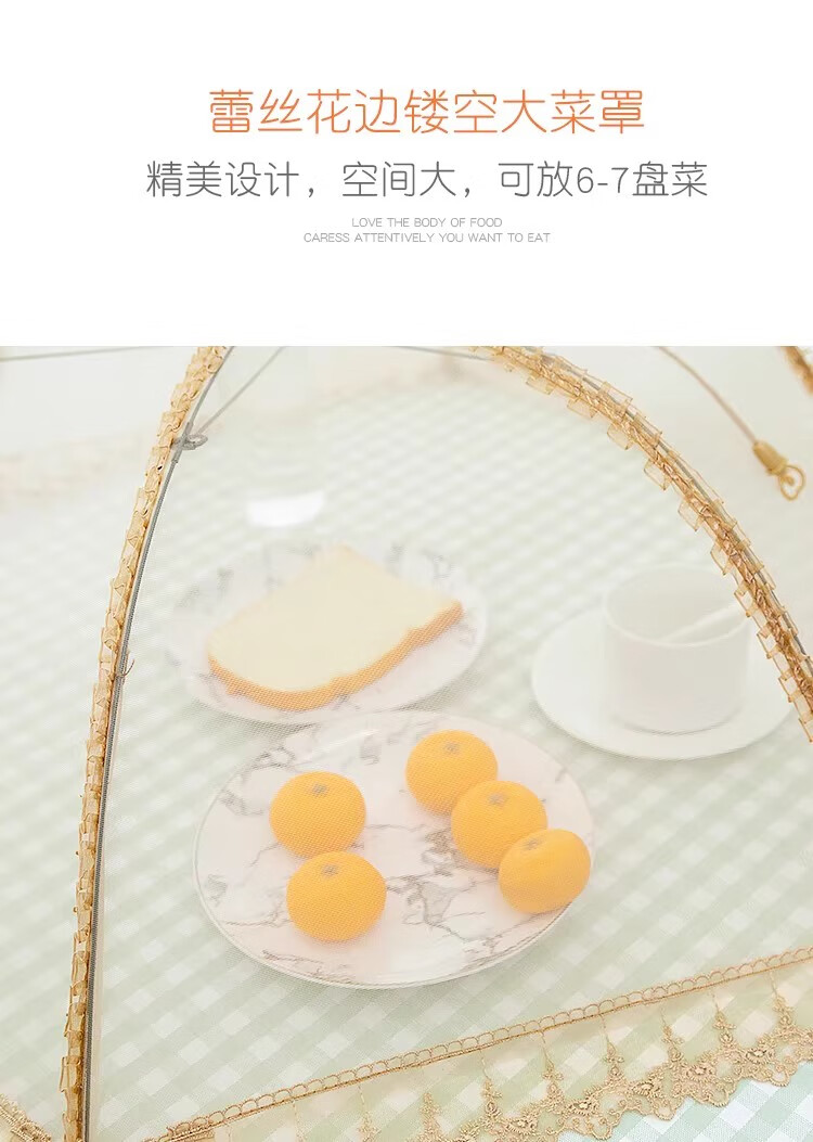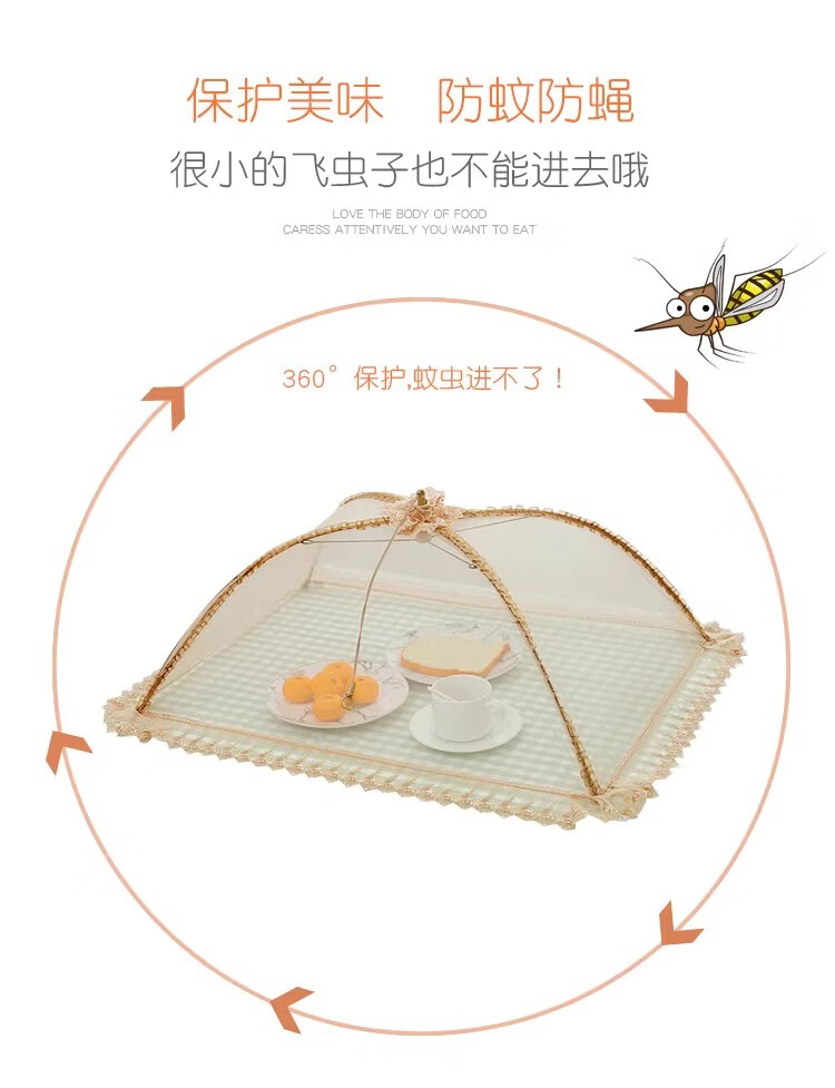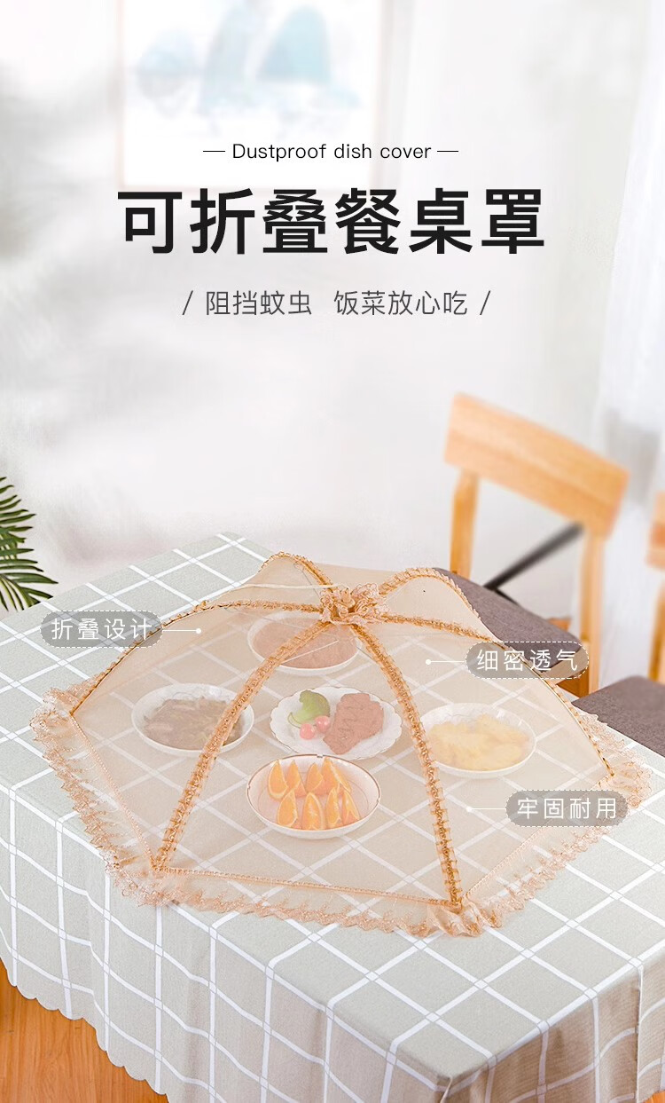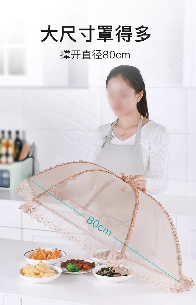 威尔基菜罩菜网罩餐桌罩饭菜罩盖菜防尘罩菜罩子遮菜罩碗罩饭桌的防蝇罩 可折叠菜罩80cm