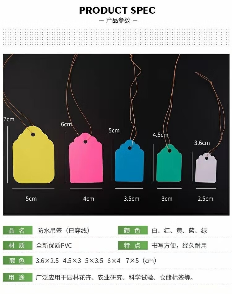 奔新农果树木植物吊牌带绳园艺标签牌防水塑料标记牌多肉吊签牌花卉挂牌 5×3.5白色100张