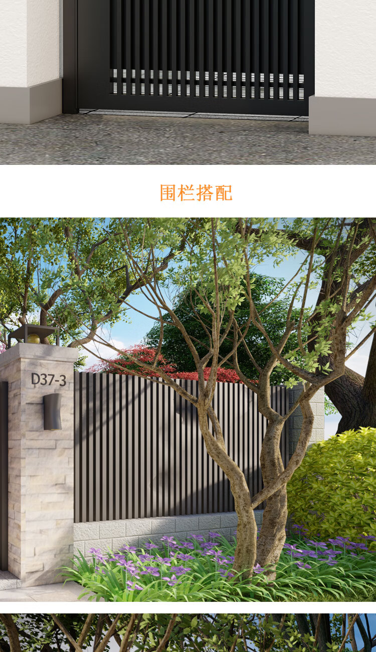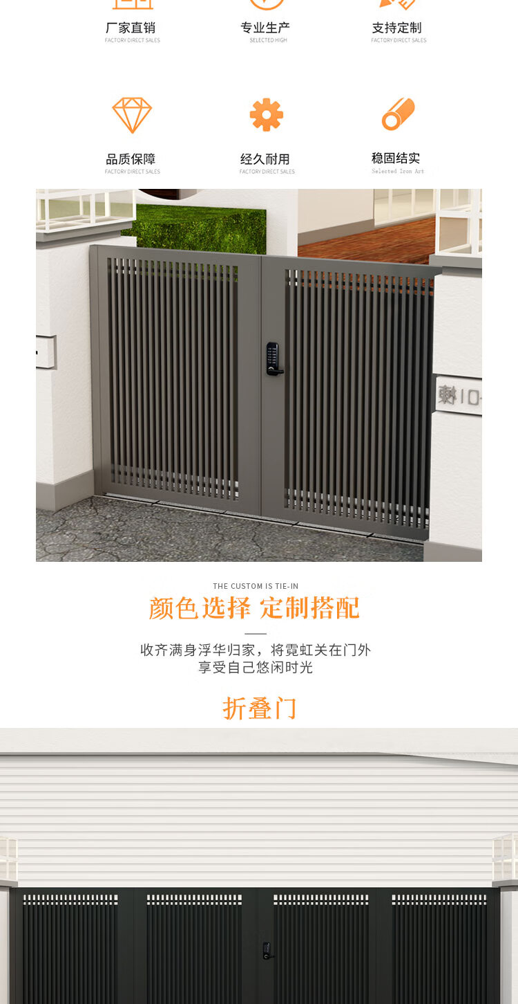 金赋顺不锈钢庭院折叠门别墅铁艺大门小区入户单双开门乡村铝艺栅栏院门 款式1/平方