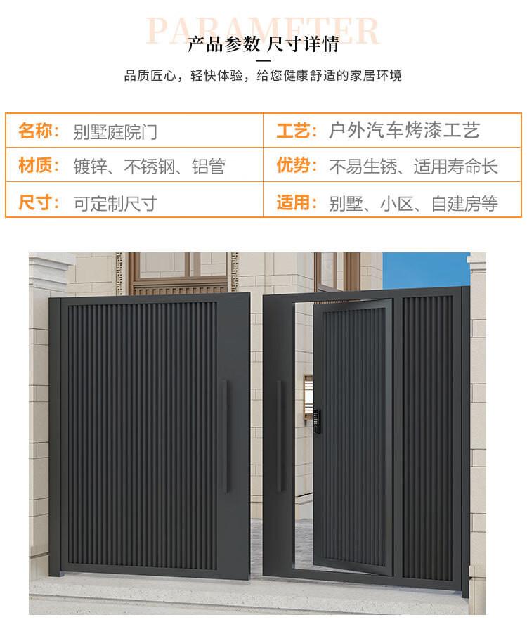金赋顺铝合金庭院门铁艺双开门农村户外不锈钢花园院子门自建房电动大门 款式1 双开门