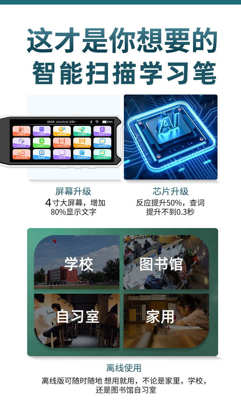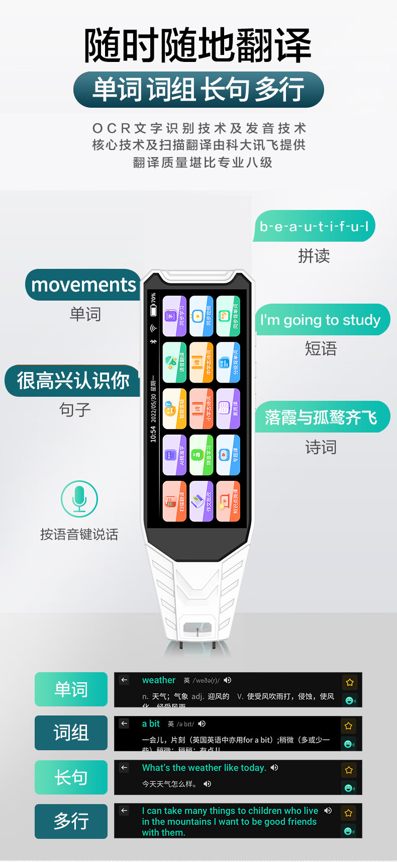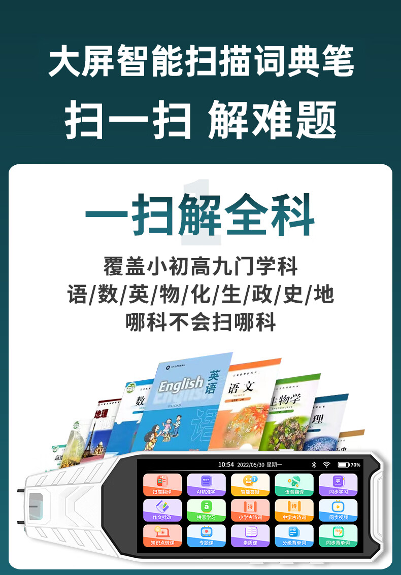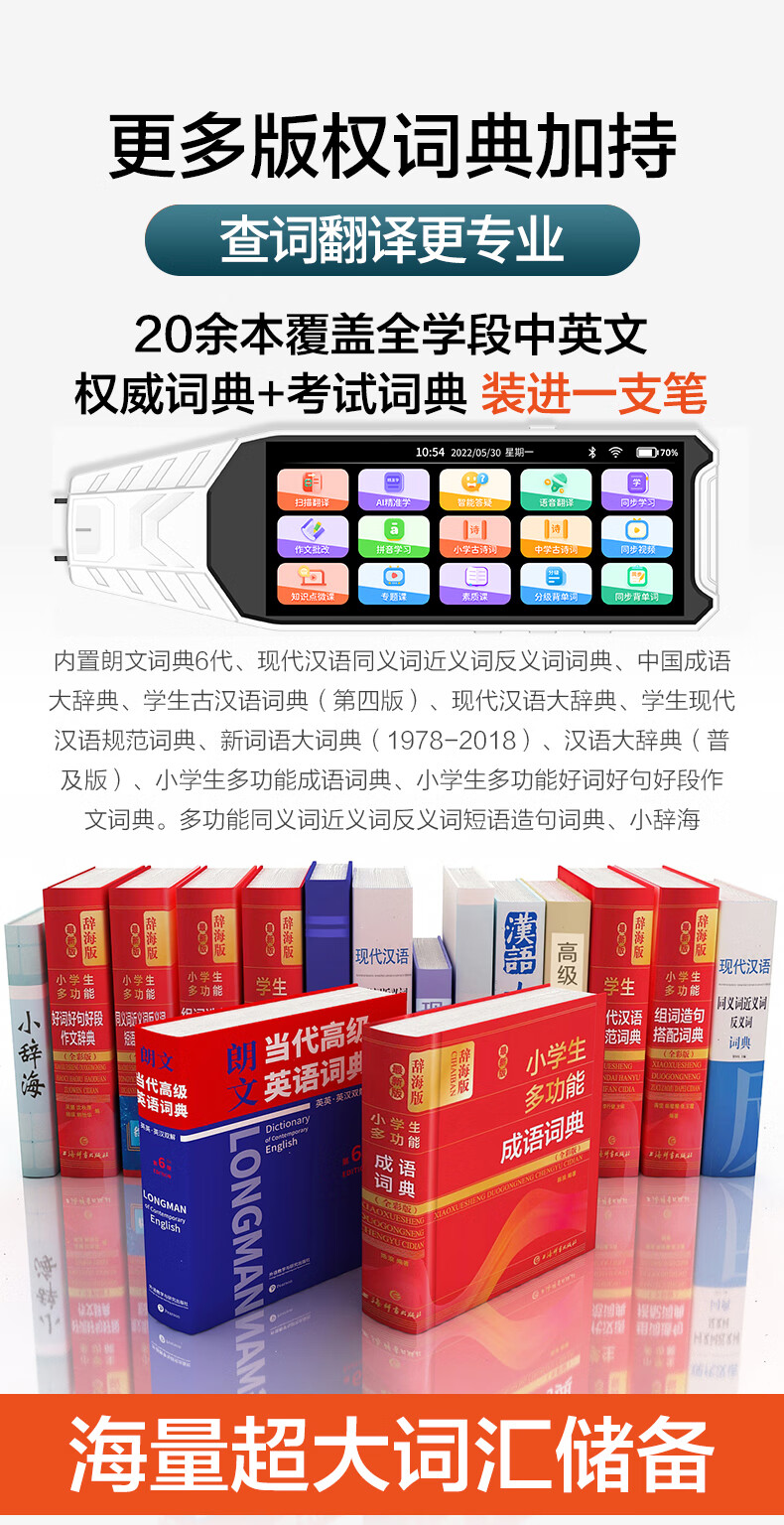 Doctoral pen English reading pen scanning learning pen student dictionary pen primary school junior high school high school curriculum synchronous tutorial translation word learning machine reading machine offline AI intelligent voice offline high-end version 3.71 inch + 8G + full subject + problem solving