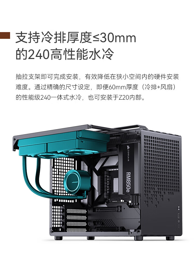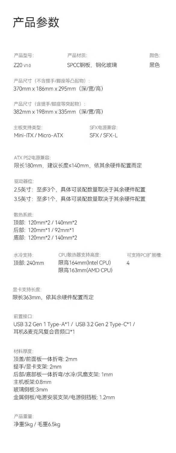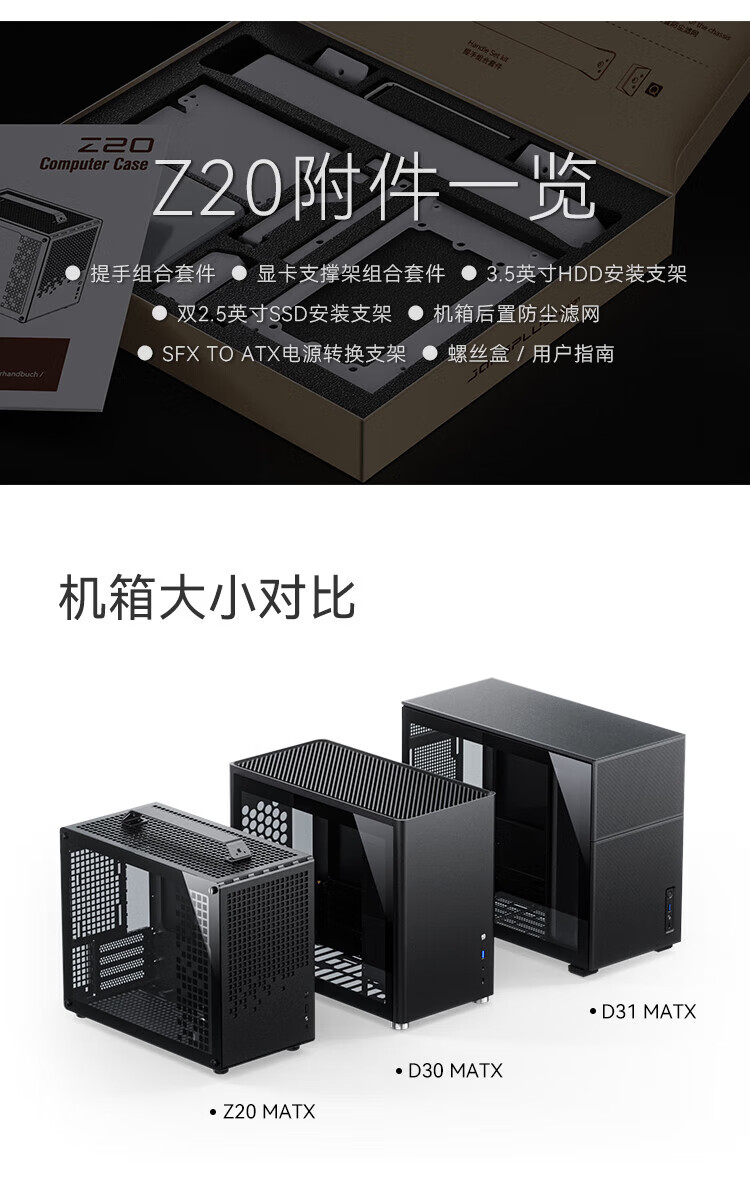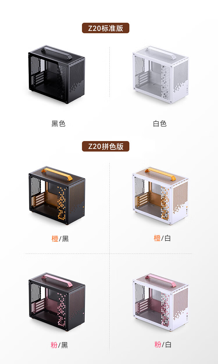 JONSBO Z20 Grifftyp MATX weiß 240 wassergekühltes Mini-Kompakt-MINI-Kleingehäuse TYPEC-Desktop-Büro weiße seitlich transparente Spielekonsole Desktop-ITX-Computergehäuse Z20 schwarz + Prism 7PRO-Lüfter * 3 (1 positiv und 2 negativ)