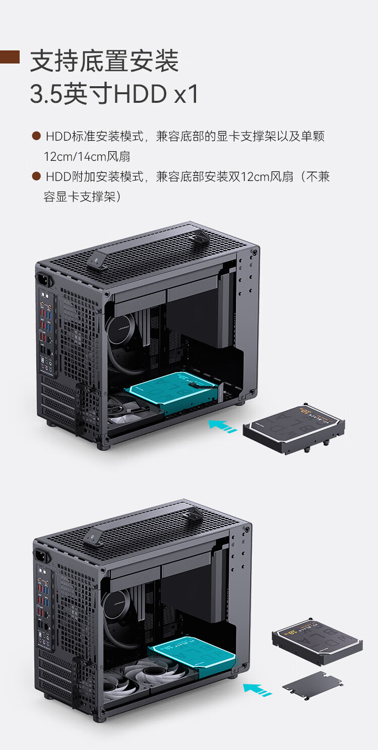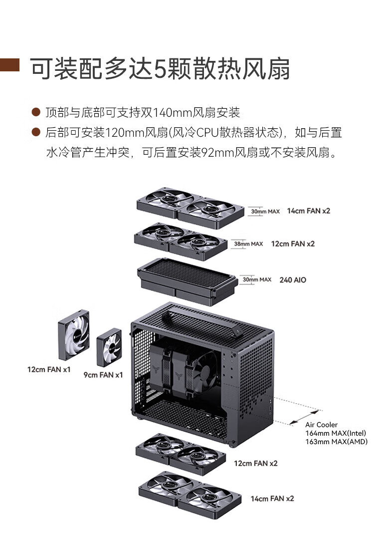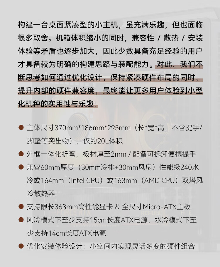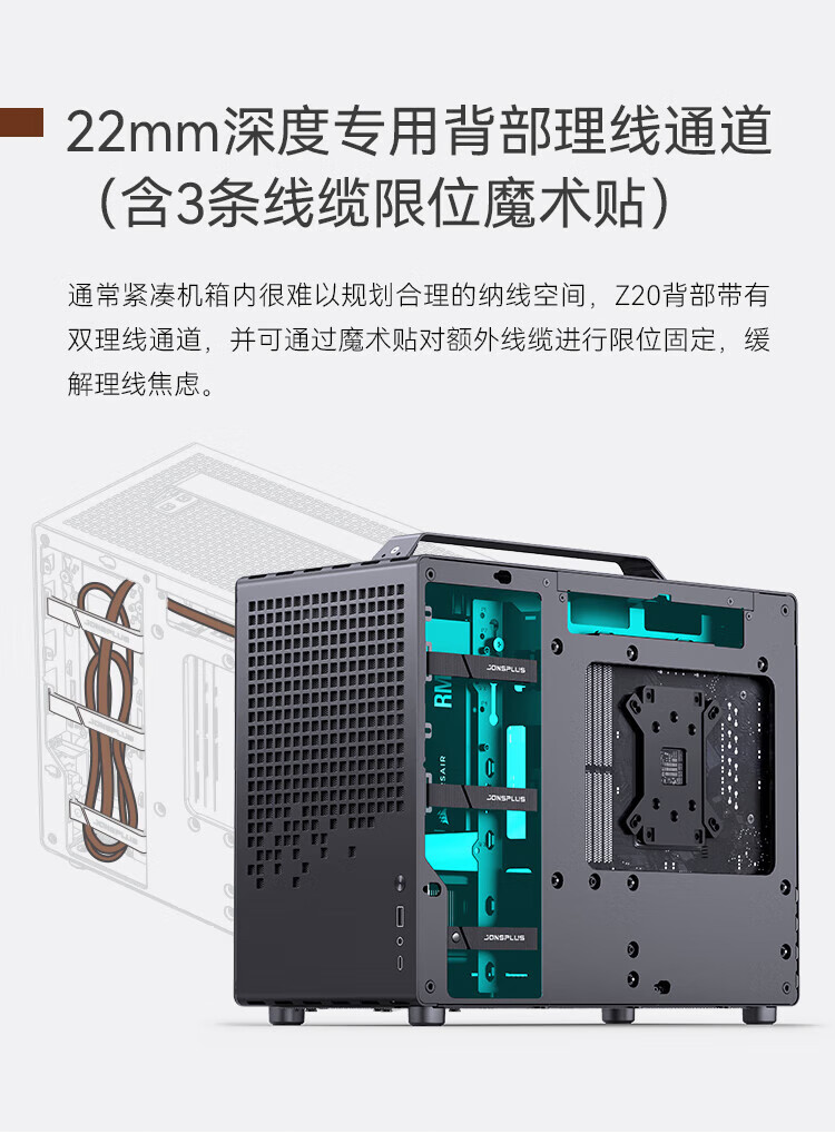 JONSBO Z20 Grifftyp MATX weiß 240 wassergekühltes Mini-Kompakt-MINI-Kleingehäuse TYPEC-Desktop-Büro weiße seitlich transparente Spielekonsole Desktop-ITX-Computergehäuse Z20 schwarz + Prism 7PRO-Lüfter * 3 (1 positiv und 2 negativ)