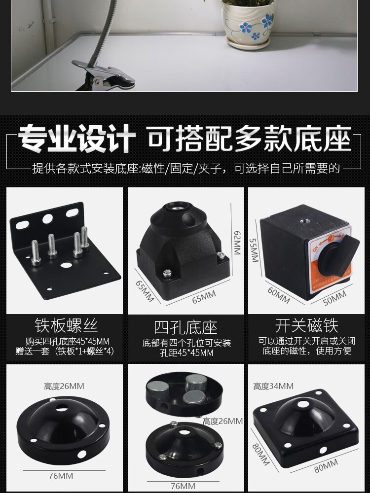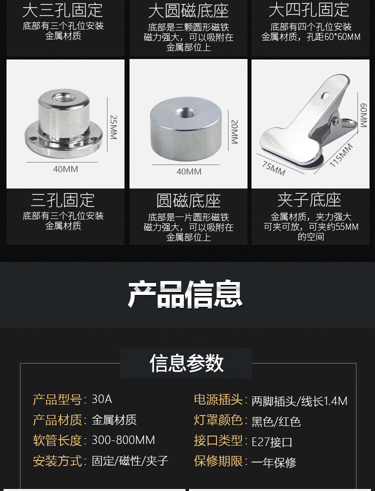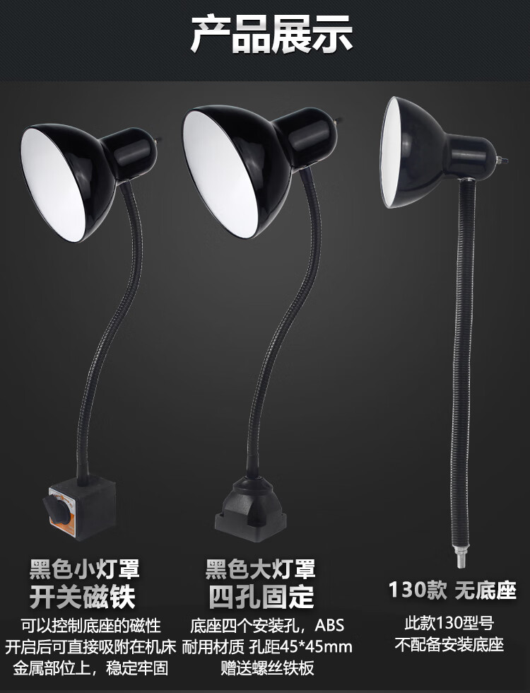 Janevia Machine Tool Work Lamp 220 Hose Magnet Sewing Machine Lampshade 27 Magnetic Lathe Lamp Industrial Desk Lamp Round Magnetic Base 400mm Large Cover Without Bulb Button Switch