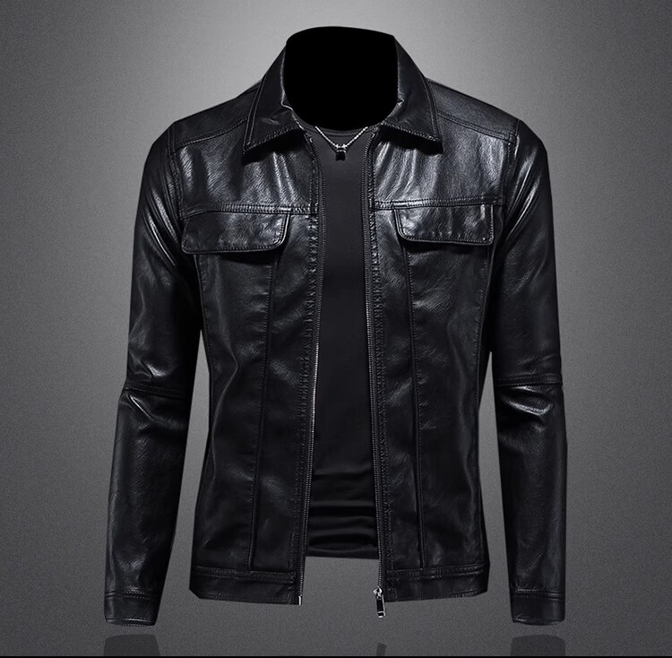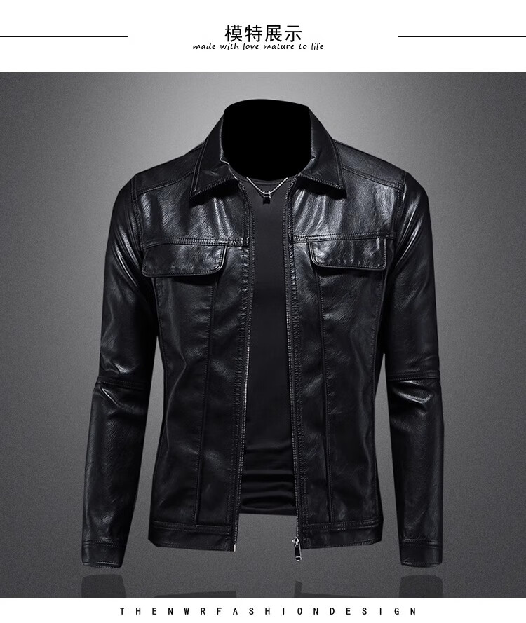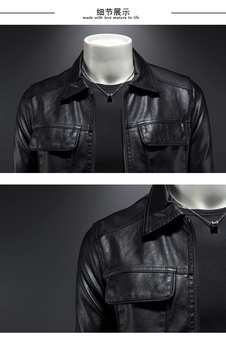 ANDSEEYOU chaqueta de cuero de solapa de marca motocicleta para hombre guapo otoño e invierno nuevo estilo parka hermosa chaqueta de cuero delgada exterior chino Día de San Valentín negro L