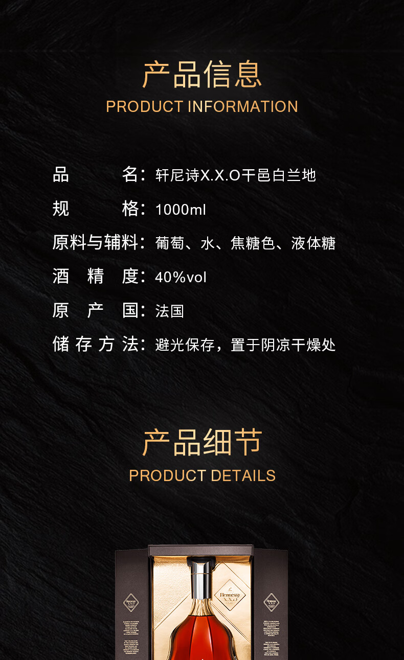 轩尼诗【官方直营】轩尼诗XXO干邑白兰地 1000mL 1瓶 法国进口洋酒